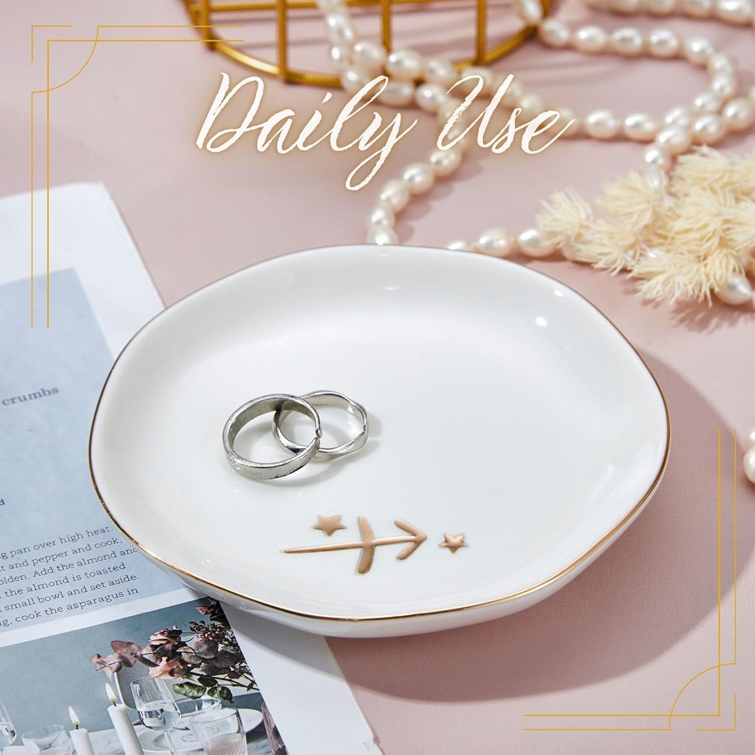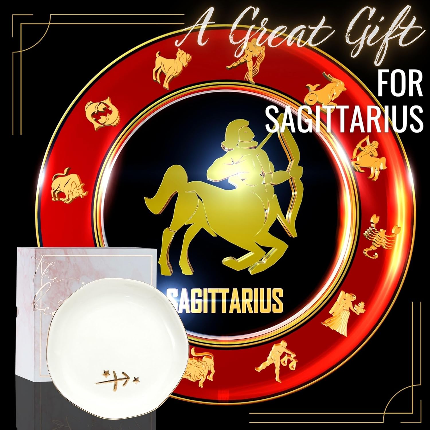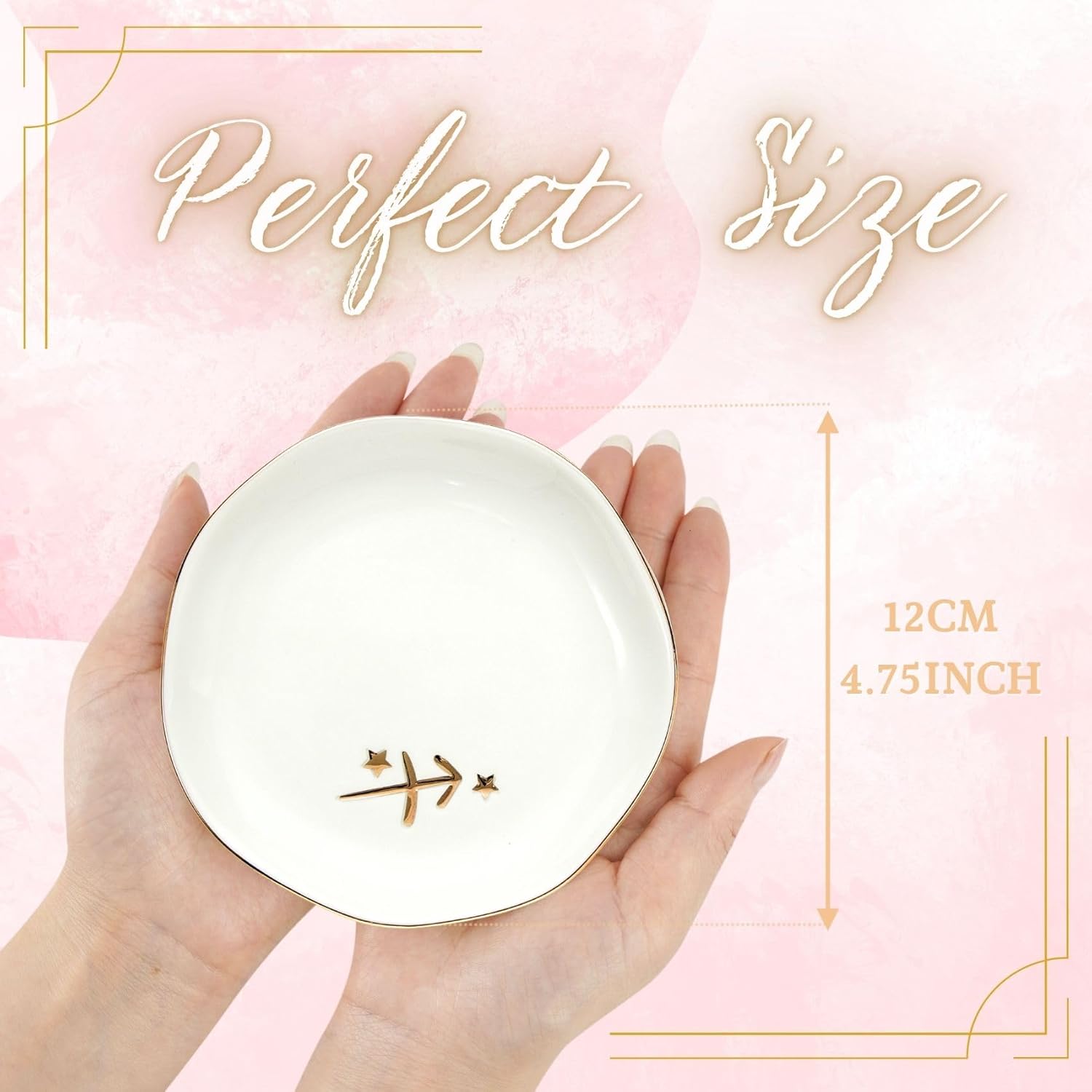 - [GIFT FOR SAGITTARIUS] Featuring the Sagittarius zodiac symbol with star accents in gold, this ring dish is a thoughtful birthday gift for anyone born under this sign. Perfect for keeping jewelry, keys, or small trinkets safe, while also serving as a stylish decorative accent for vanities, desks, or dressers.