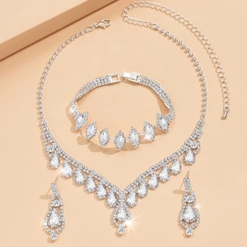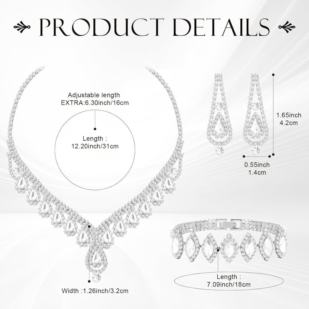 - COMPLETE SET – You will recieve a bridal jewelry sets for women include 1pcs silver necklace for women, 1 pair dangle earrings, and 1pcs braclet, classic and elegant wedding jewelry for bride is never go out of styles, easy to match your clothes and make you more beauty.