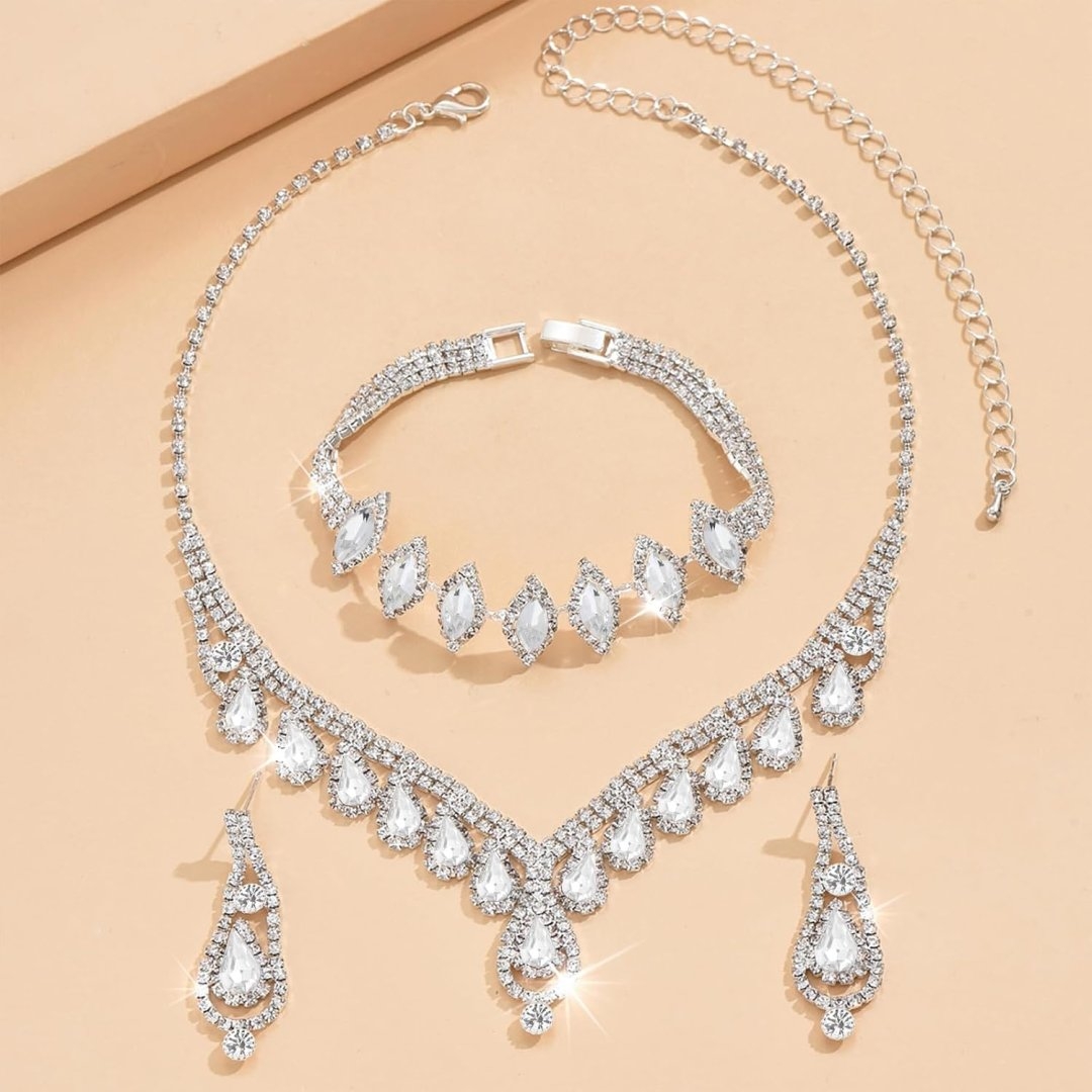 - HYPOALLERGENIC MATERIAL – Silver jewelry sets for women are made of eco-friendly brass with clear rhinestones. High polished, shiny and long lasting, not easy broken, lead-free and nickel-free, friendly for senstive skin.