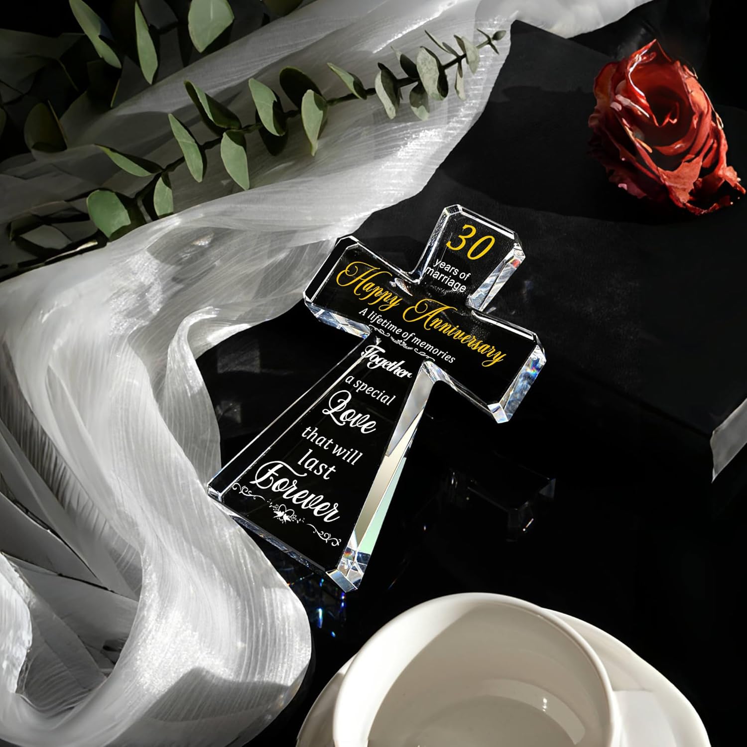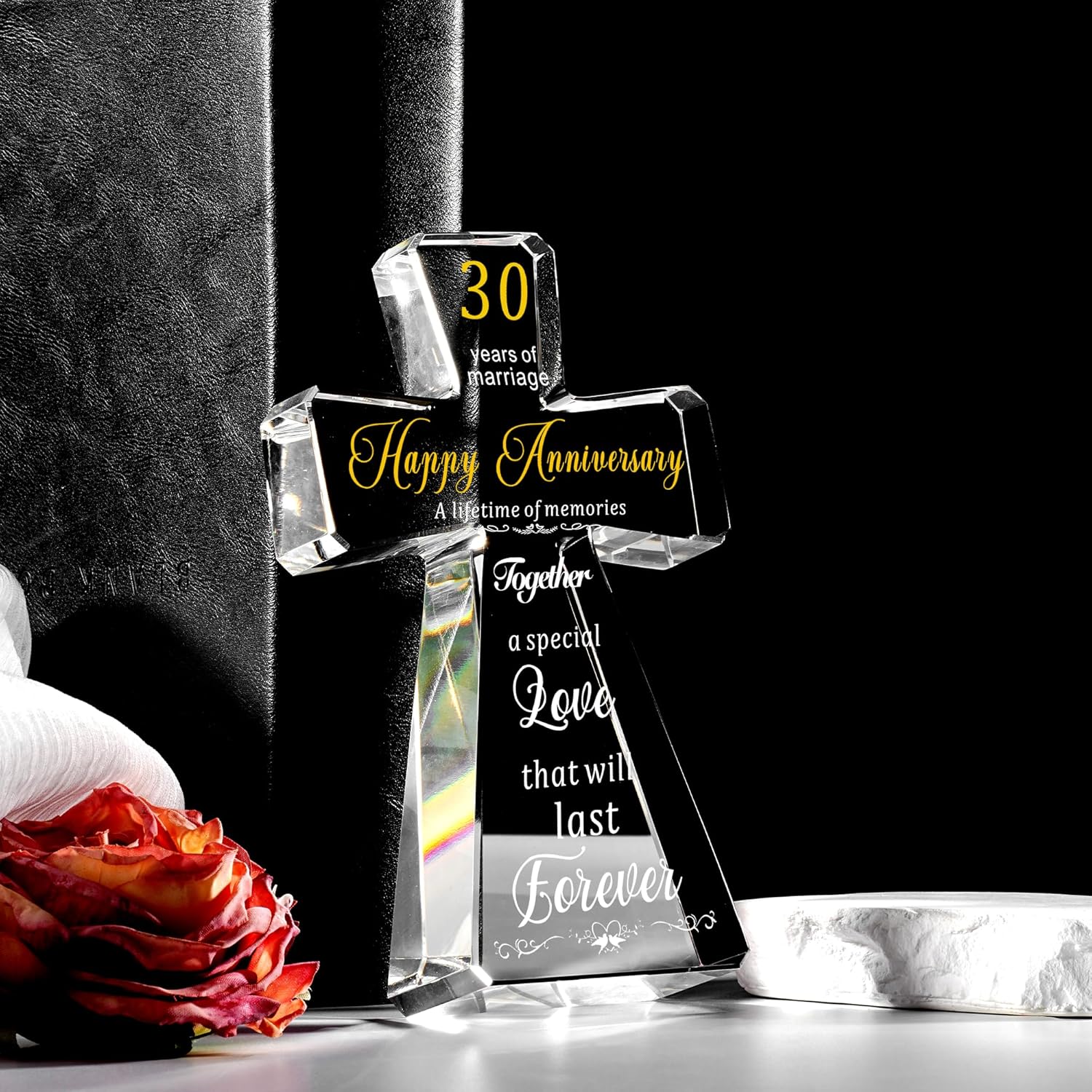 - Exquisite Craftsmanship: the anniversary wedding cross decoration is made through multi-faceted cutting technology, laser cutting and hand-colored and polished k9 crystal, presenting a more transparent and pure effect; the bottom is widened and enlarged, making it more stable and safe to place