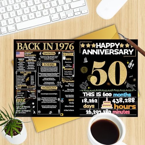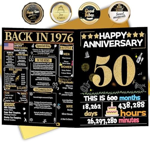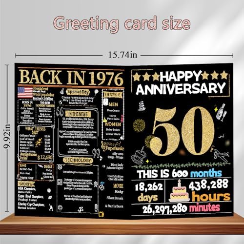 Joycard 50th Anniversary Card for Women Men, Gold Wedding Card for Wife Husband, Sweet Marriage Decorations Gifts for Couple, Perfect for Her Him on Anniversary Day, Back in 1976