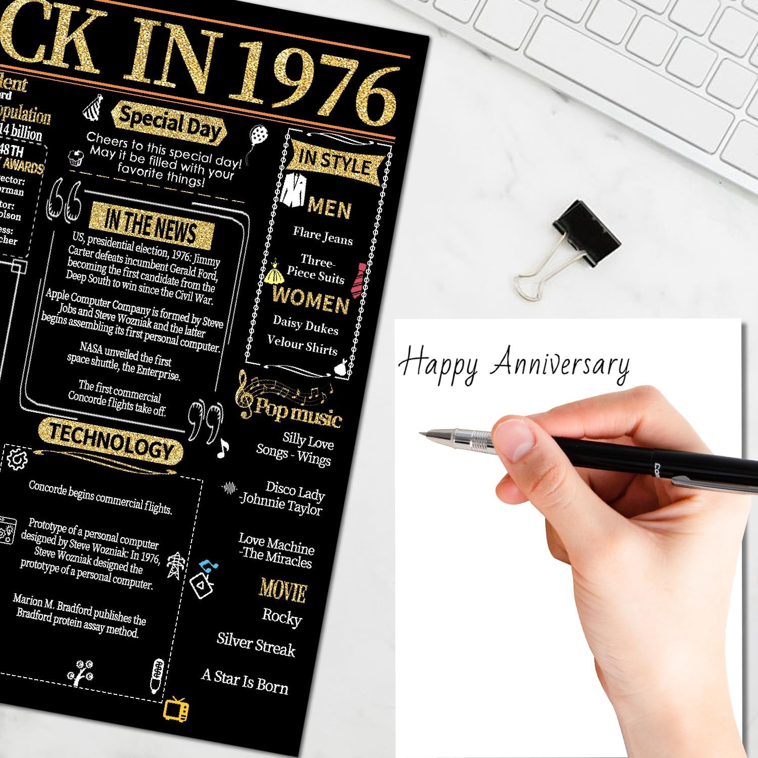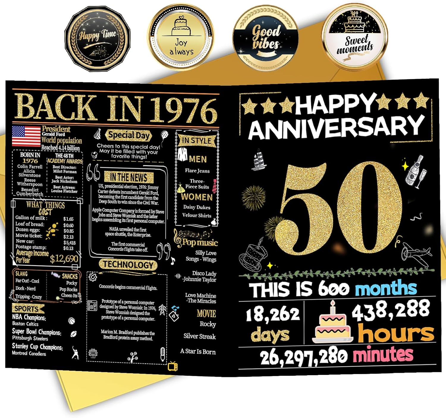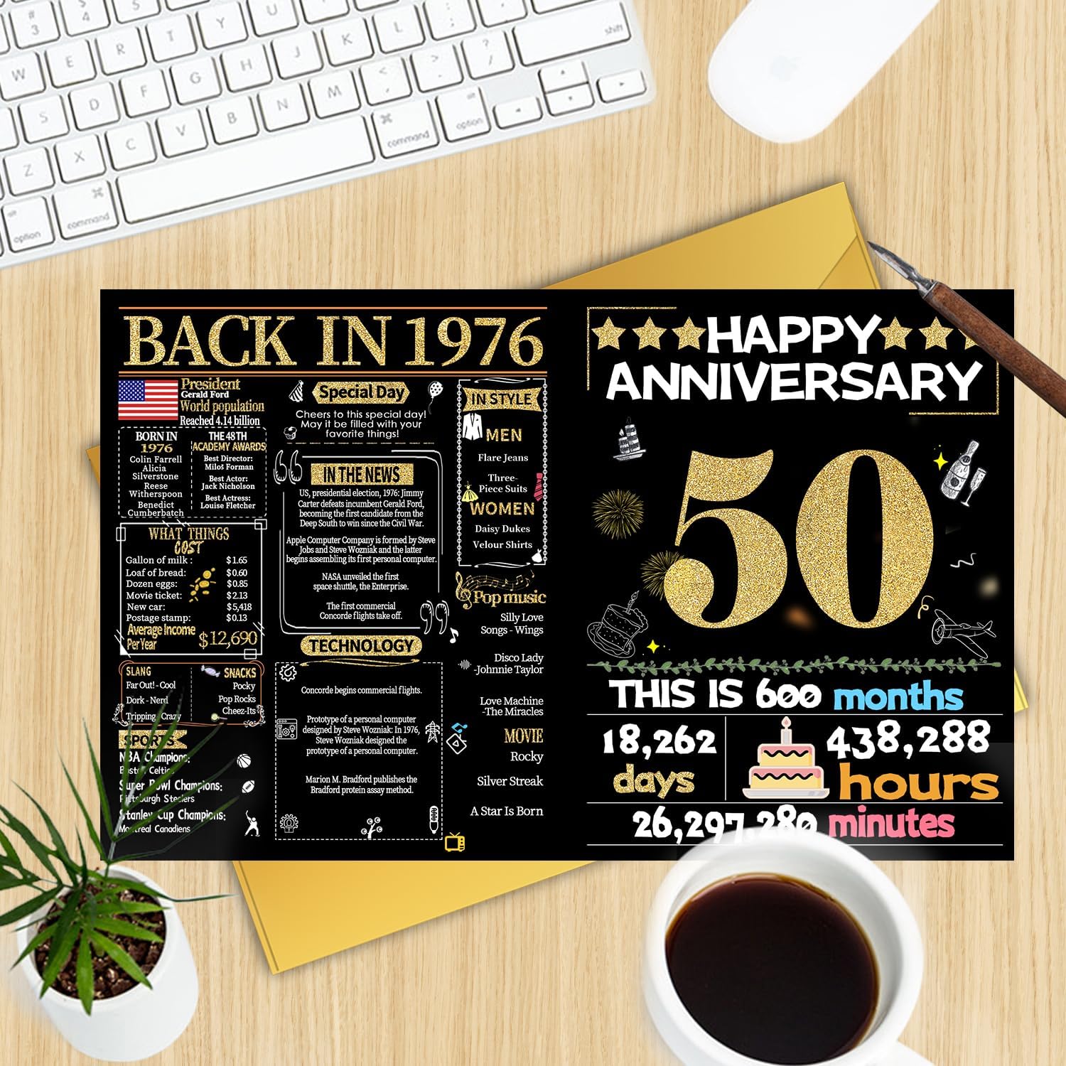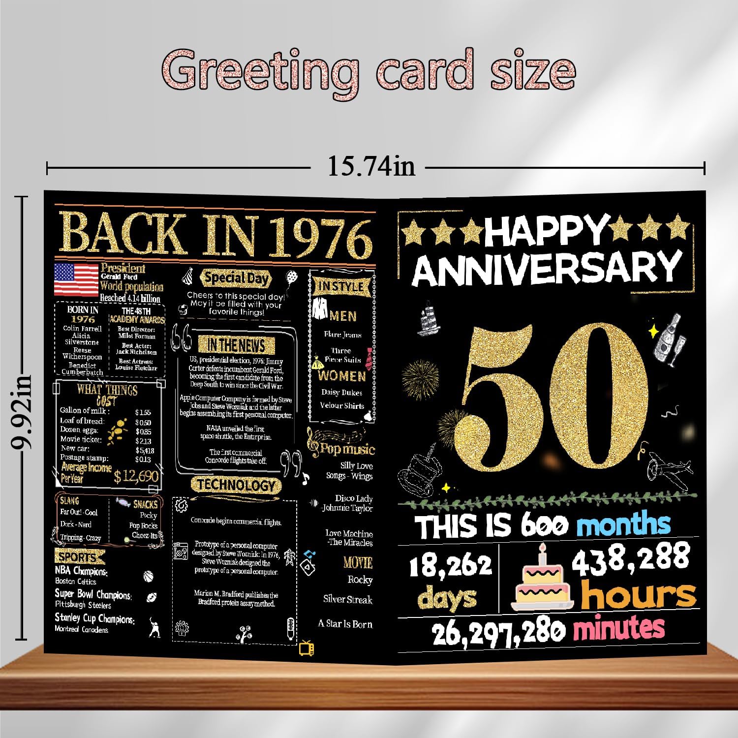 • 【Back in 1976】This anniversary card records interesting stories from 1976 and reminds us of the past. Create more interesting topics for this special day.