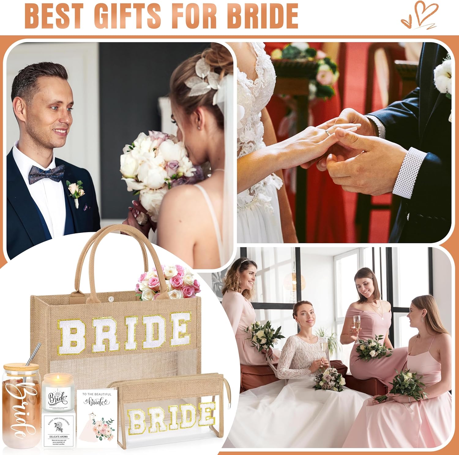 - 【Bride Gifts】This elegant gift set includes:1*16 oz glass cup with lid and straw, 1* high-quality coated tote bag, 1*stylish cosmetic pouch, 1*beautifully crafted greeting card. It would be a great choice for a bride or for any special occasion.