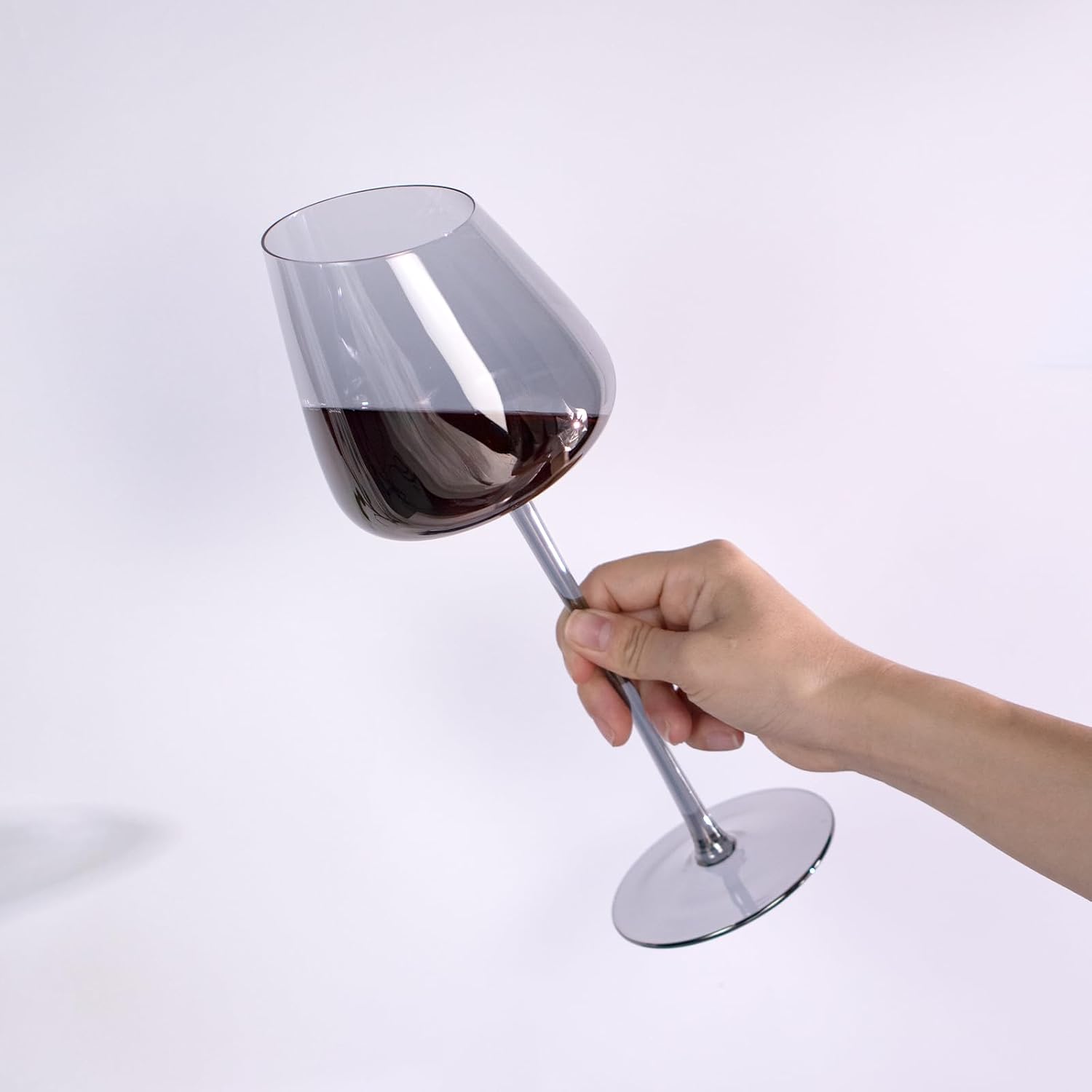 KAMMAK Wine Glasses Set of 2, 16.06 oz Hand Blown Crystal Bordeaux Wine Glasses, Thin Rim & Long Stem, Perfect for Red & White, Daily Use, Wedding or Birthday Gift with Gift Box, XH-H280 Gray