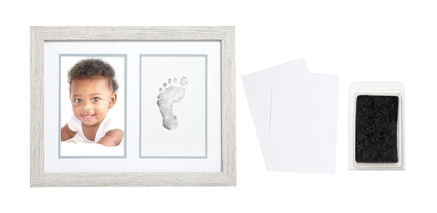 • Includes rustic frame with space for one photo and one hand and/or footprint, one nontoxic easy-to-use inkpad