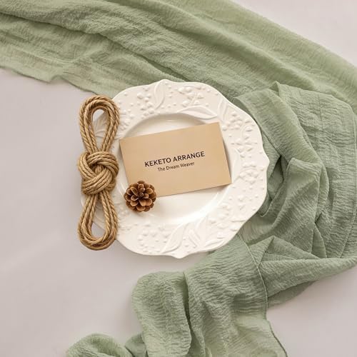 Keketoarrange Sage Green Spring Easter Cheesecloth Table Runner 120 Inch 10 FT Rustic Boho Cheese Cloth Runner for Wedding Baby Shower Bridal Shower Sheer Gauze Centerpiece Home Decorations