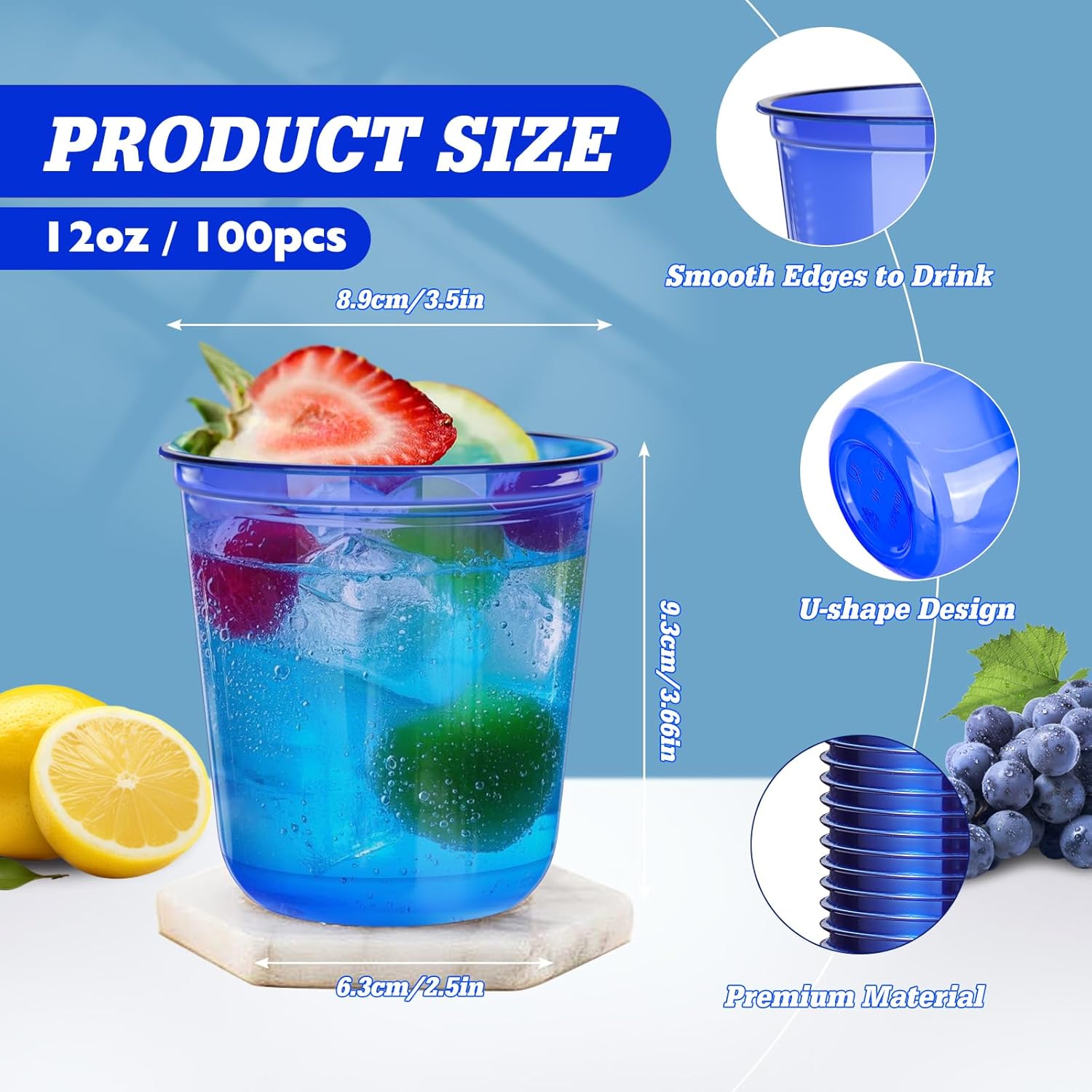 • Packaging includes: You will receive 100 blue plastic cups, each 12 ounces in size and approximately 3.66×3.5 inches. These blue disposable wine glasses come in abundant quantity for replacements and use, suitable for gatherings of various scales, perfect for enjoying cocktails, whiskey, and wine