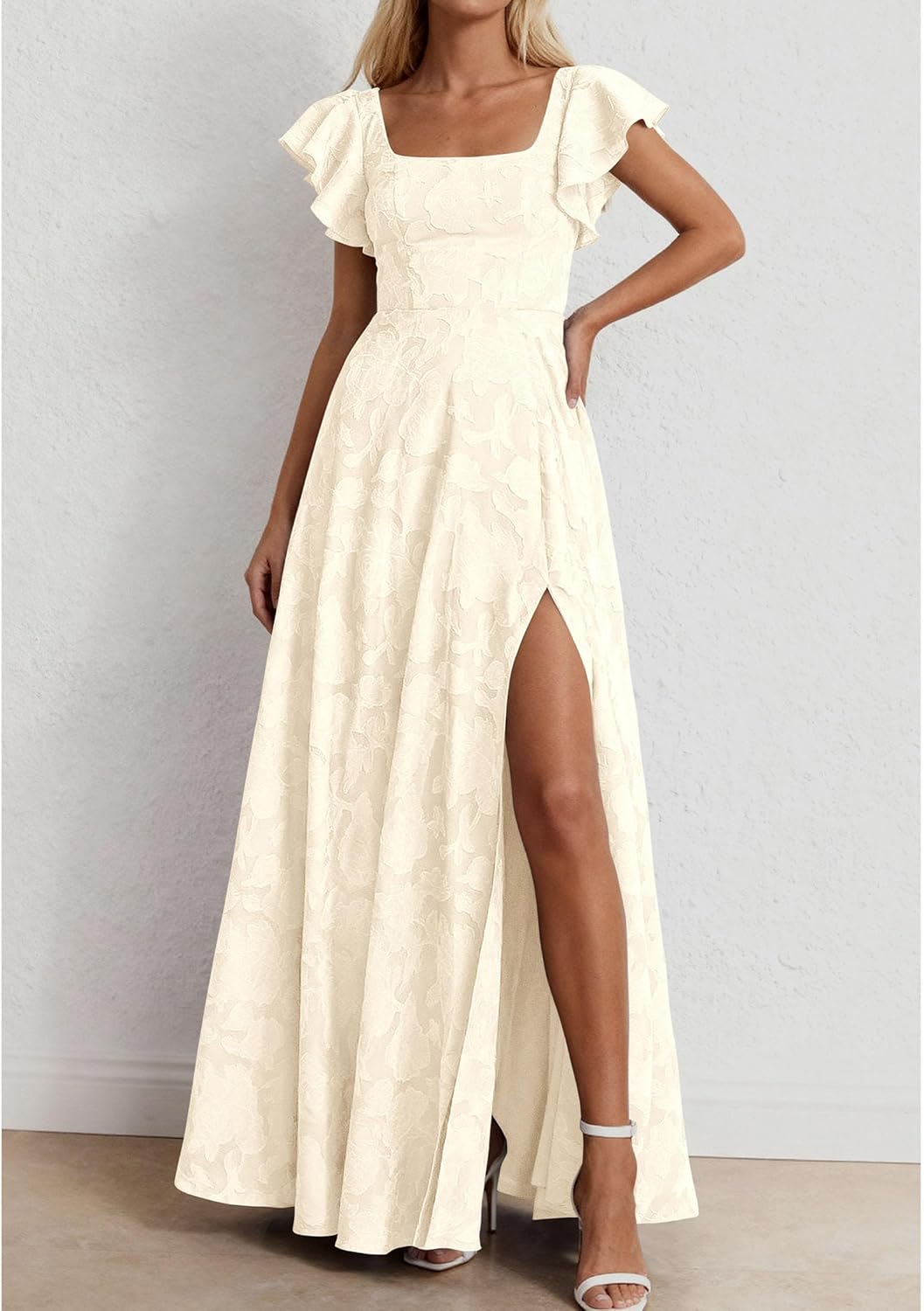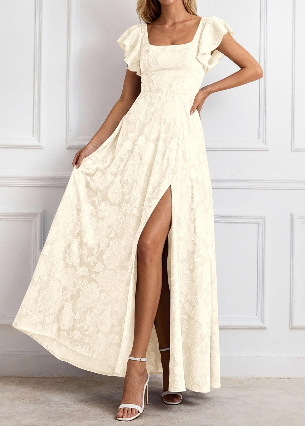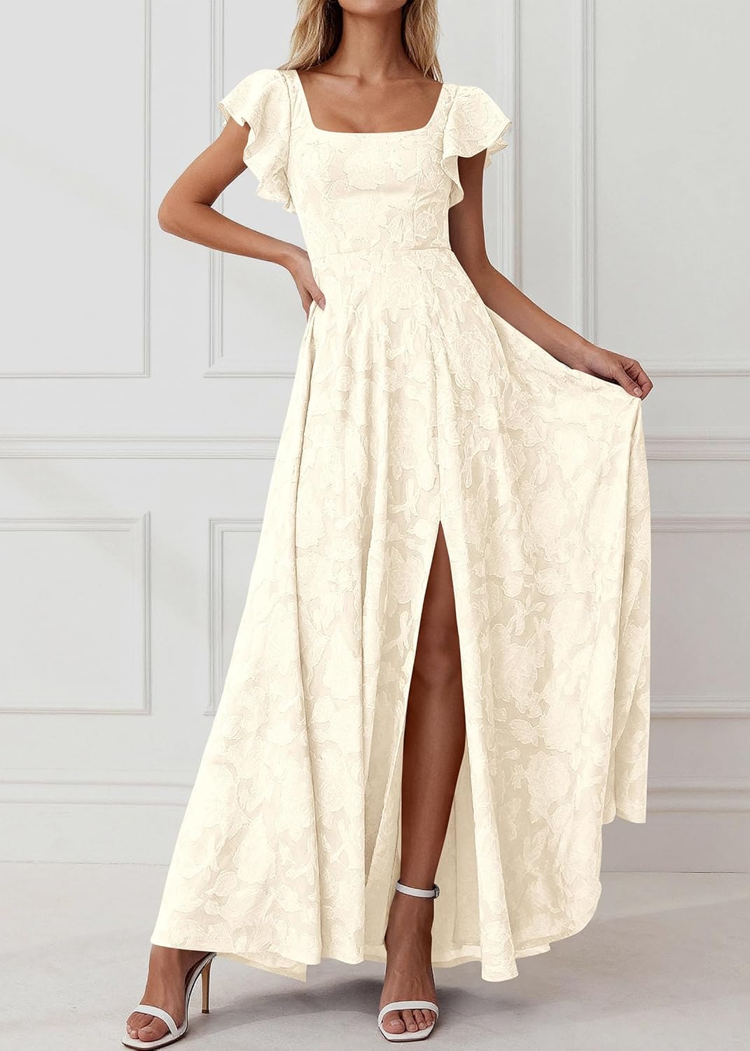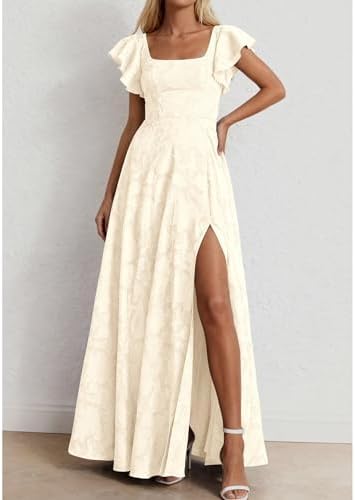 - Design: Slim-Fitting Bodice Hugs Your Curves, While The Smocked Back With Tie For a Custom Fit. Elegant Dresses for Women (With a High Side Slit) Sways Gracefully With Movement. Retro Square Neckline And Ruffled Short Sleeves. Hidden Side Pockets Add Practicality