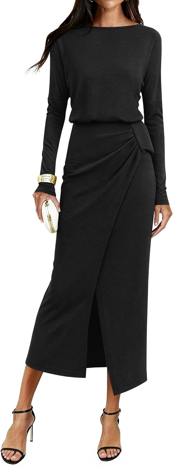 - Features: S=US 4-6, M=US 8-10, L=US 12-14, XL=US 16-18, XXL=US 20. Cocktail Dresses For Women, Fall Wedding Guest Dresses For Women, Slimming Maxi Dress Fall, Long Sleeve Cocktail Dress, Holiday Dresses For Women, Long Sleeve Wrap Dress, Wrap Dresses For Women 2026, Modest Dresses For Women, Formal Dresses For Women, Long Sleeve Ruched Dress, Bodycon Dresses For Women, Vacation Outfits For Women, Boat Neck, Batwing Long Sleeves, Elastic High Waist, Front Slit, Loose Fit Style