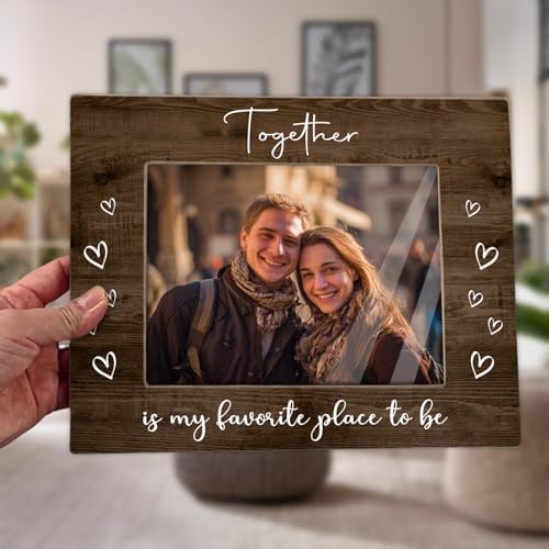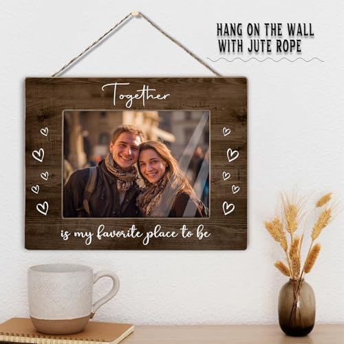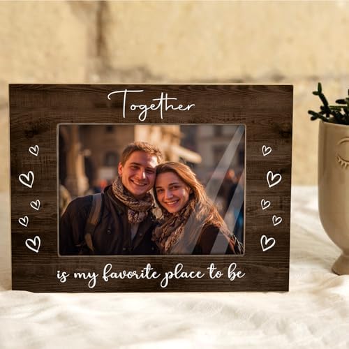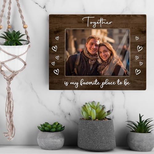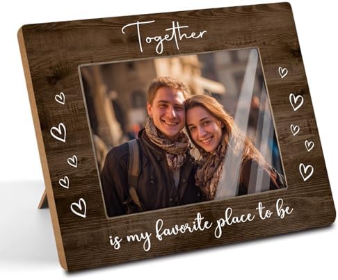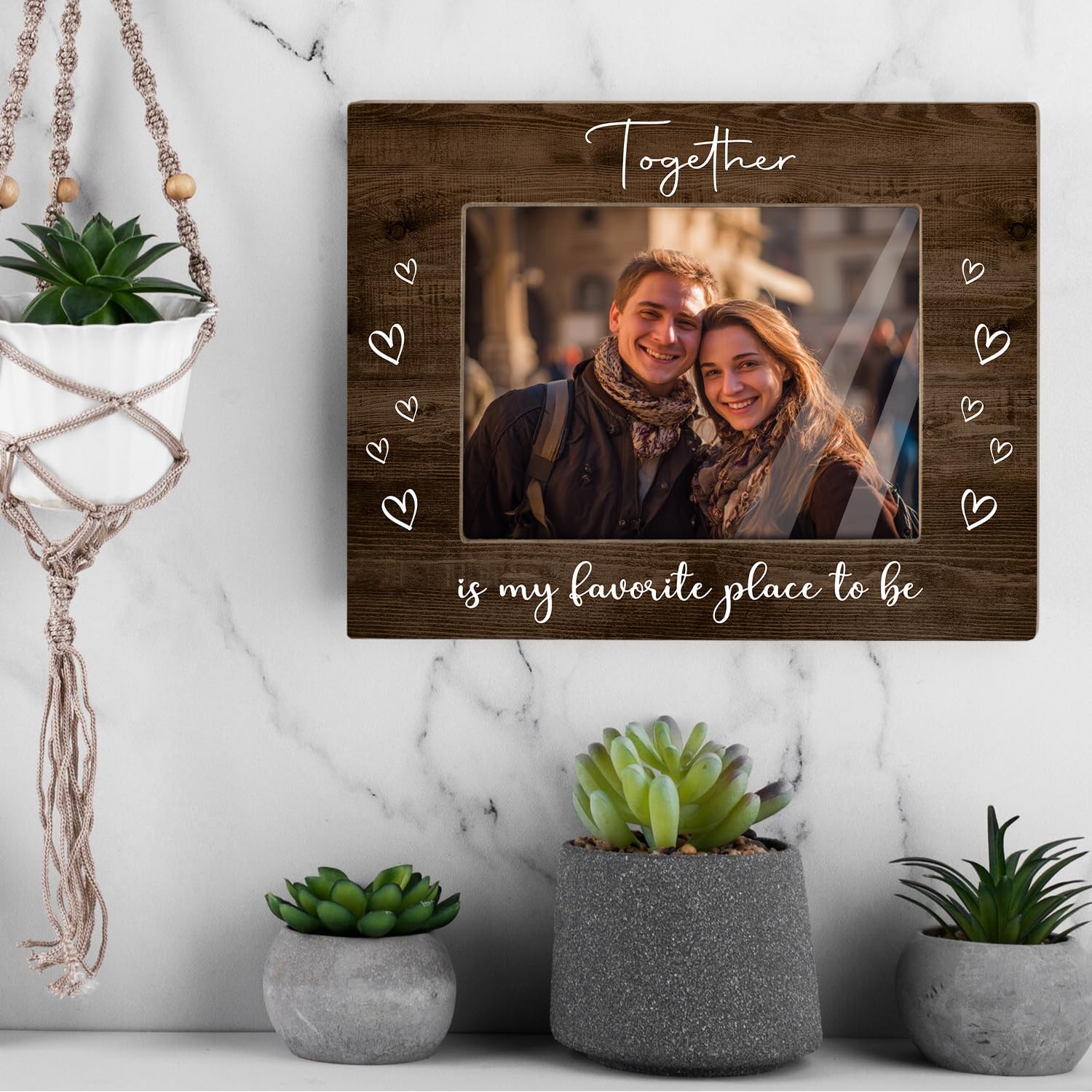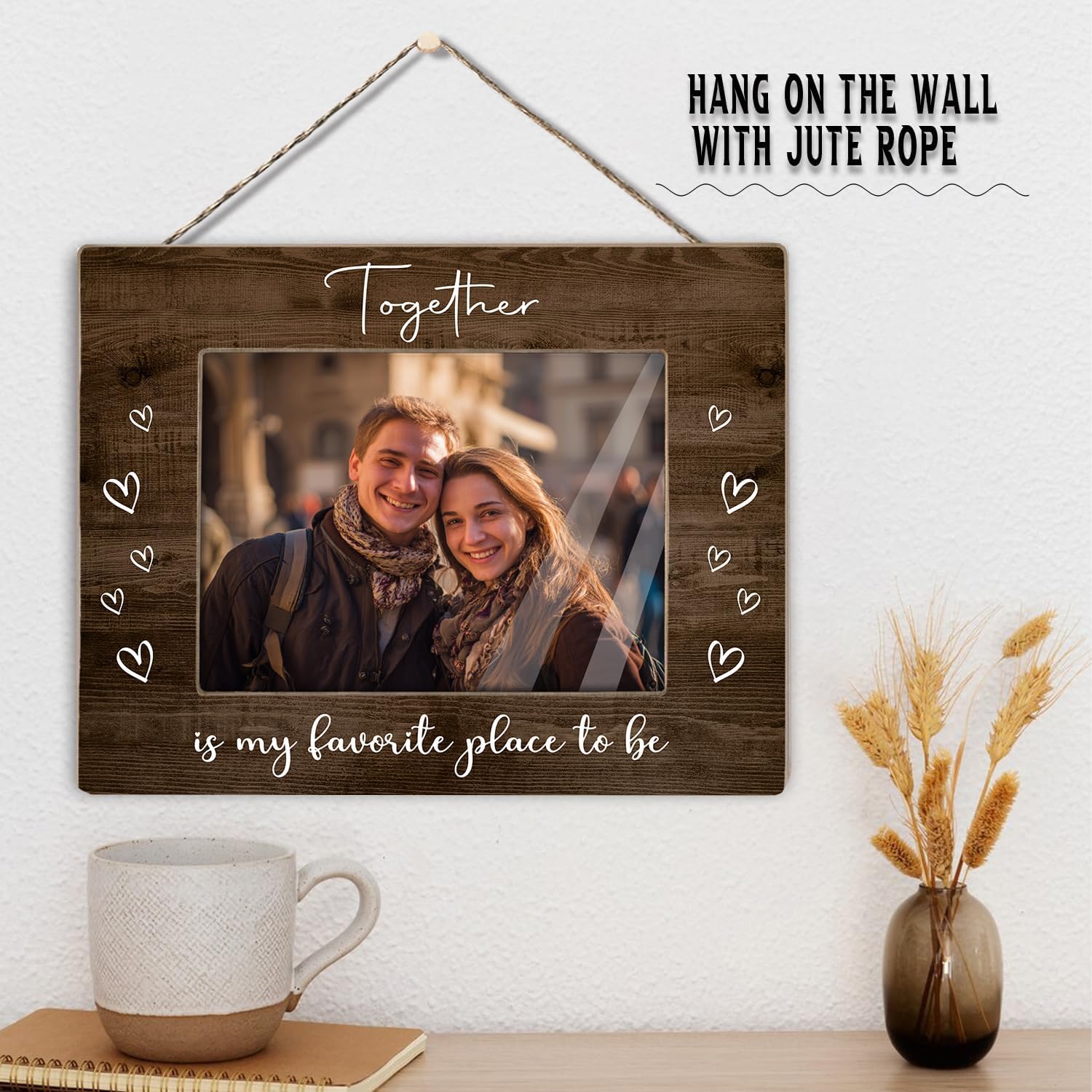 Celebrate love with this romantic 8×10 wooden picture frame, designed to hold a 5×7 photo. Featuring the quote Together is my favorite place to be, its the perfect gift for anniversaries, weddings, or Valentines Day. With a rustic finish and floral details, it adds a warm and loving touch to any space.