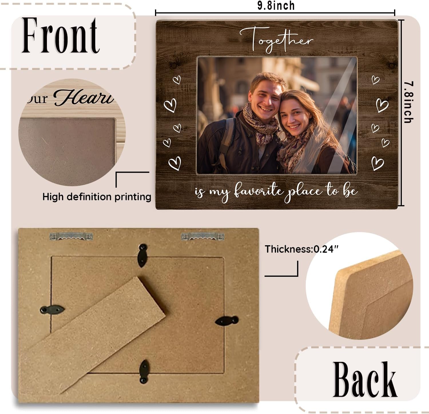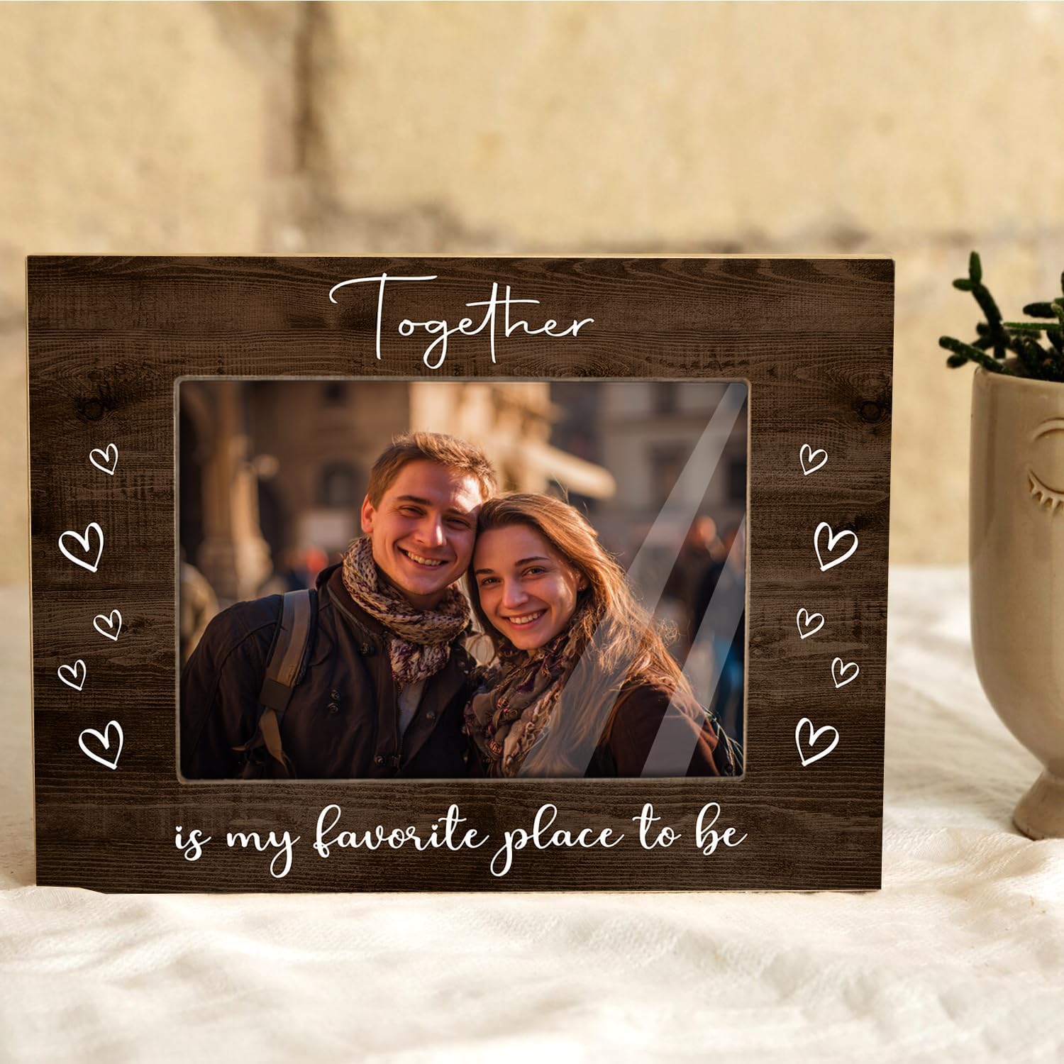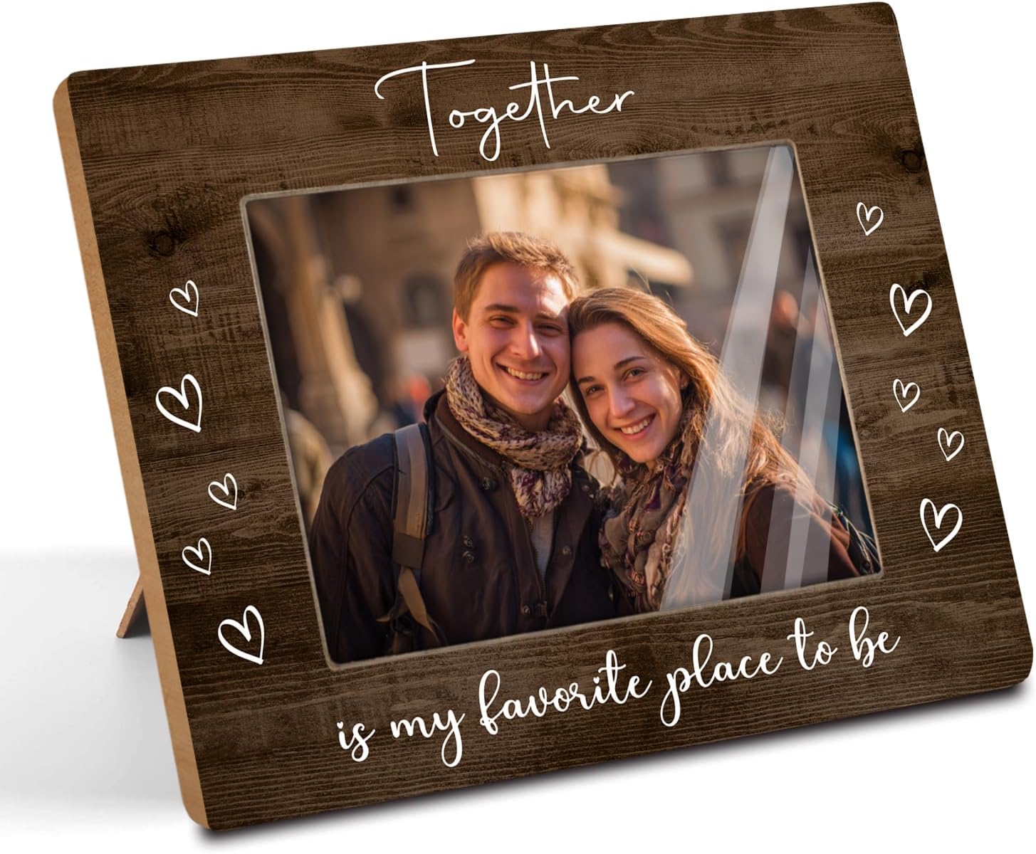 Celebrate love with this romantic 8×10 wooden picture frame, designed to hold a 5×7 photo. Featuring the quote Together is my favorite place to be, its the perfect gift for anniversaries, weddings, or Valentines Day. With a rustic finish and floral details, it adds a warm and loving touch to any space.