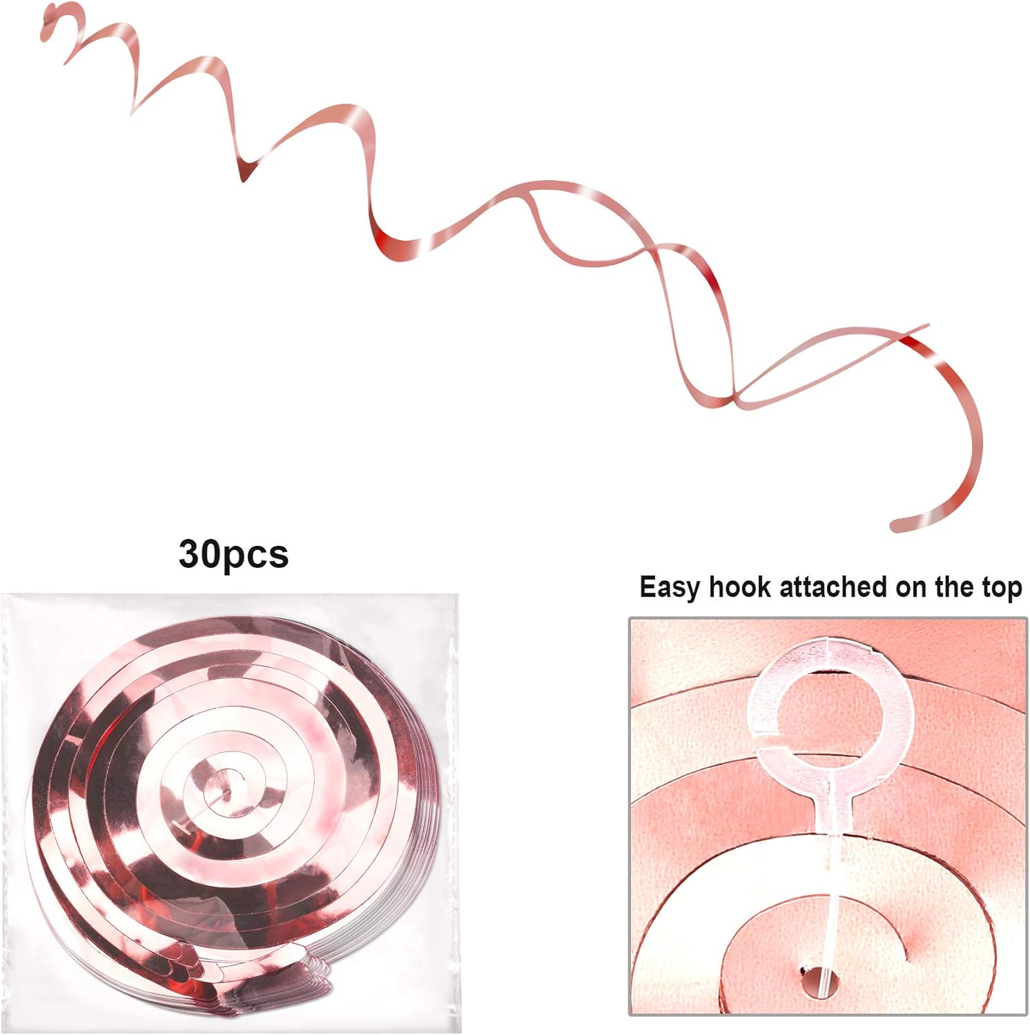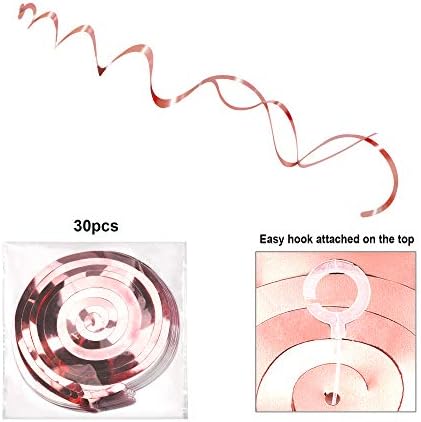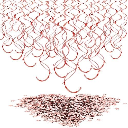- Worthy bundle includes 30 rose gold hanging swirls Spiral ceiling hangings and 1 bag metallic star confetti,enough for your whole space-themed wedding shower school ceremony decorations event.Each dizzy danglers come with a plastic hook on the top, perfect for indoor or outdoor use