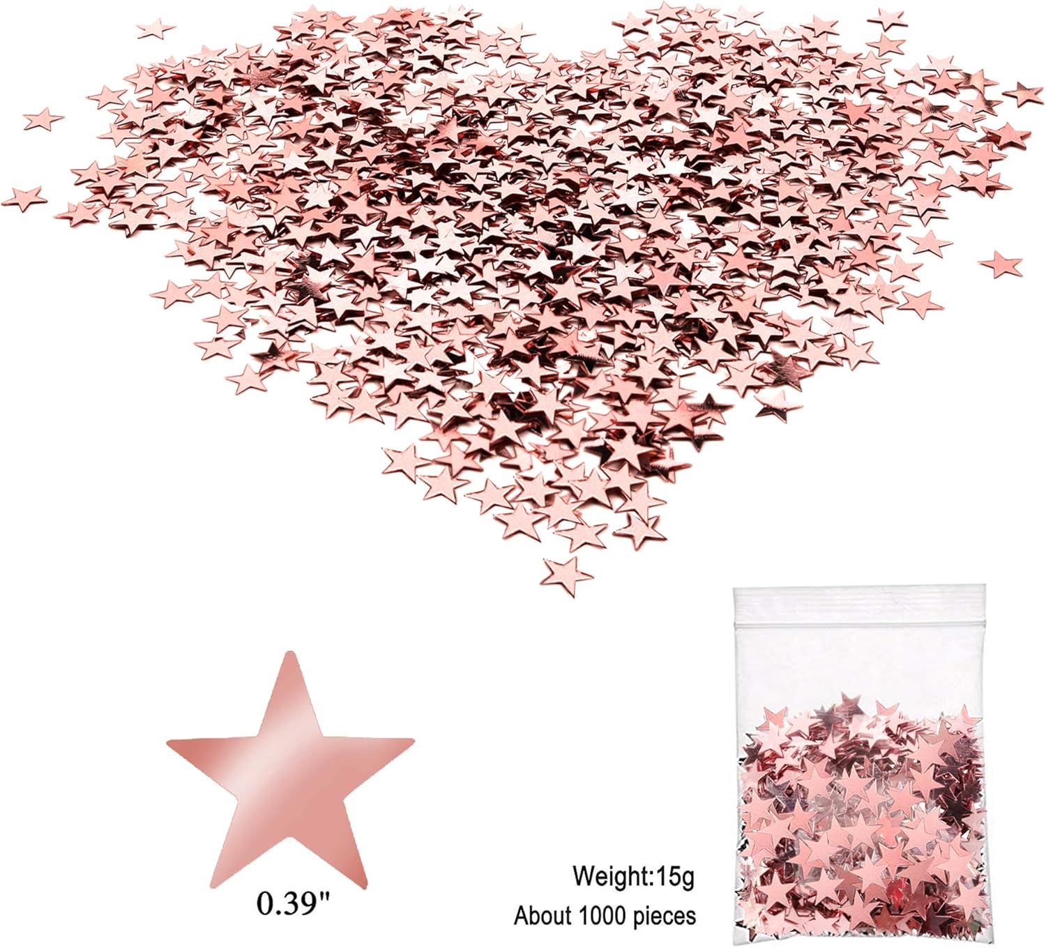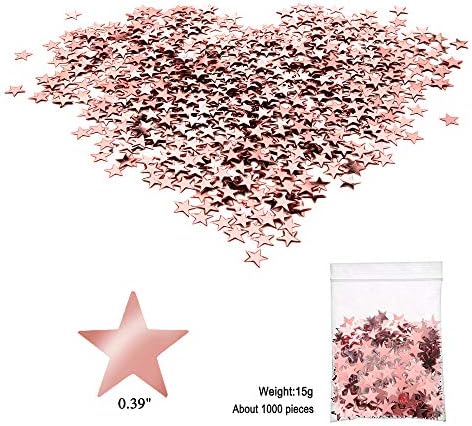 - All the foil stars confetti are rose gold on both sides, each diameter 10mm/0.39inch,total weight 15g/0.035oz and about 1000 pieces,well made with vibrant color, Just the right amount to cover our table decor our dessert.