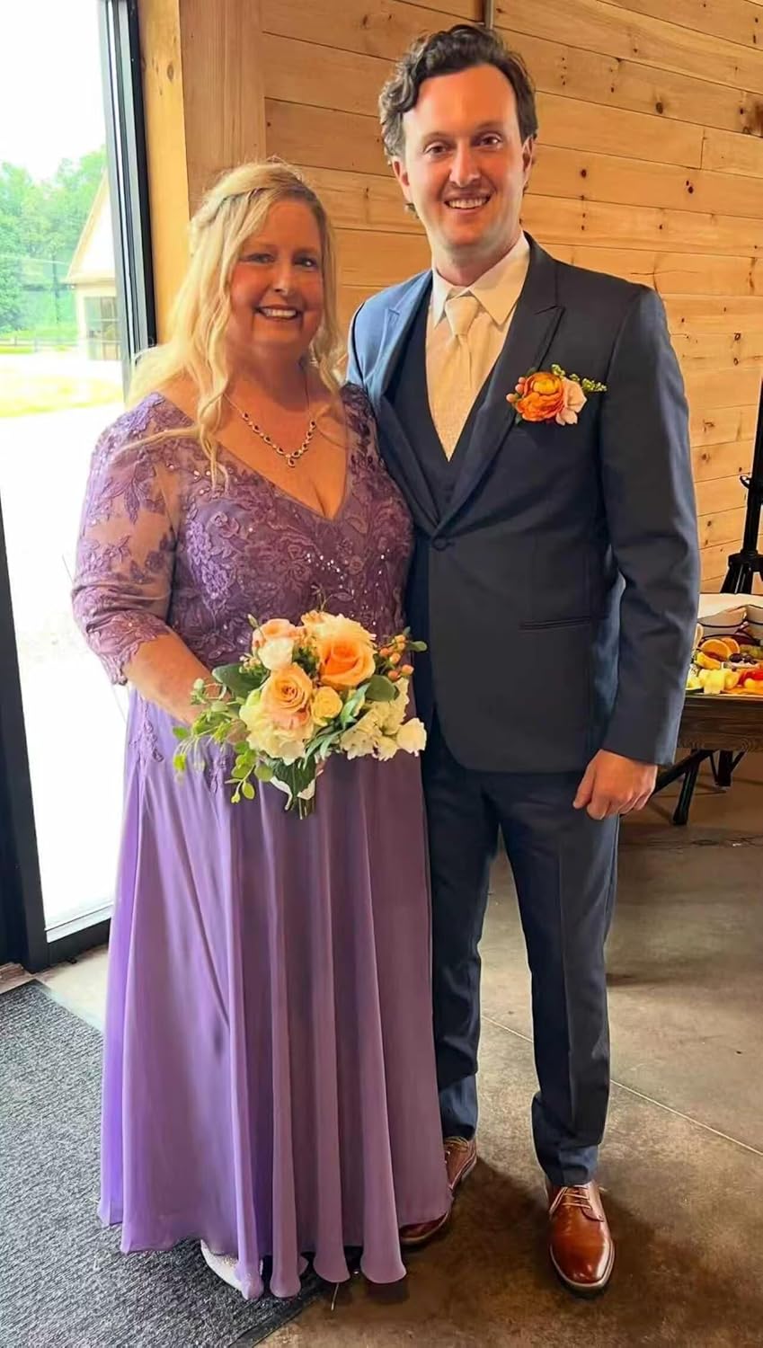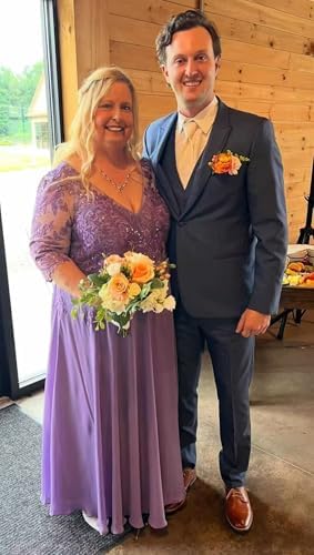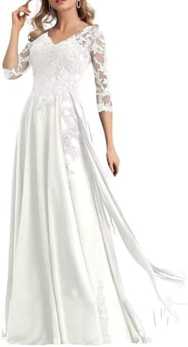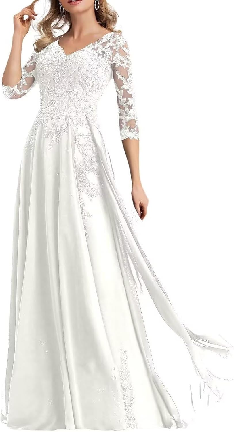• Features: Lace applique chiffon mother of the bride dresses long 2025 for wedding women long sleeves v neck mother of the groom dresses, floor length, full lining, built-in bra