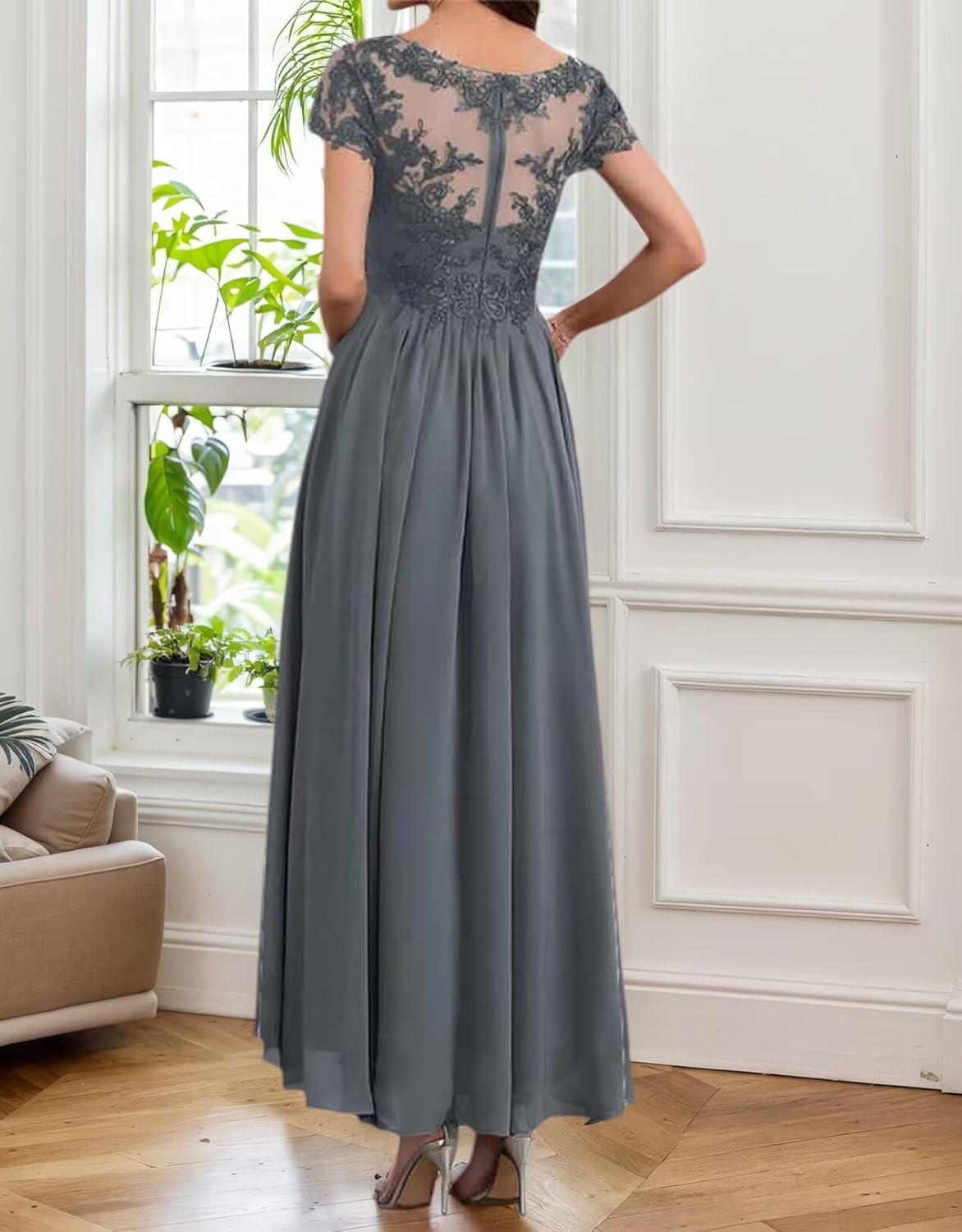 - Size:Please refer to our size chart before purchsing this chiffon lace applique mother of bride dresses for women with short sleeves. Our size chart is included in the product images