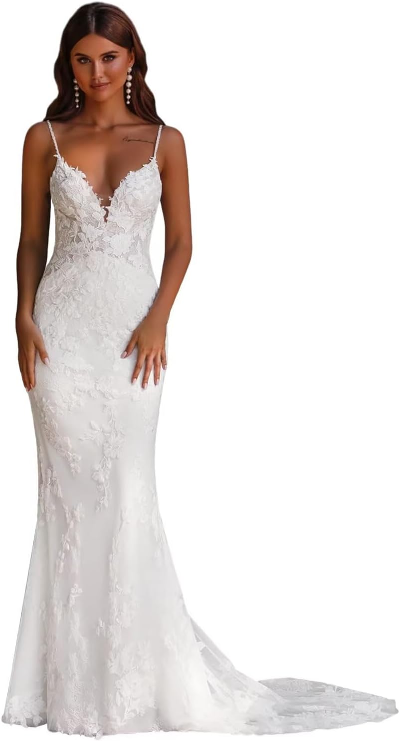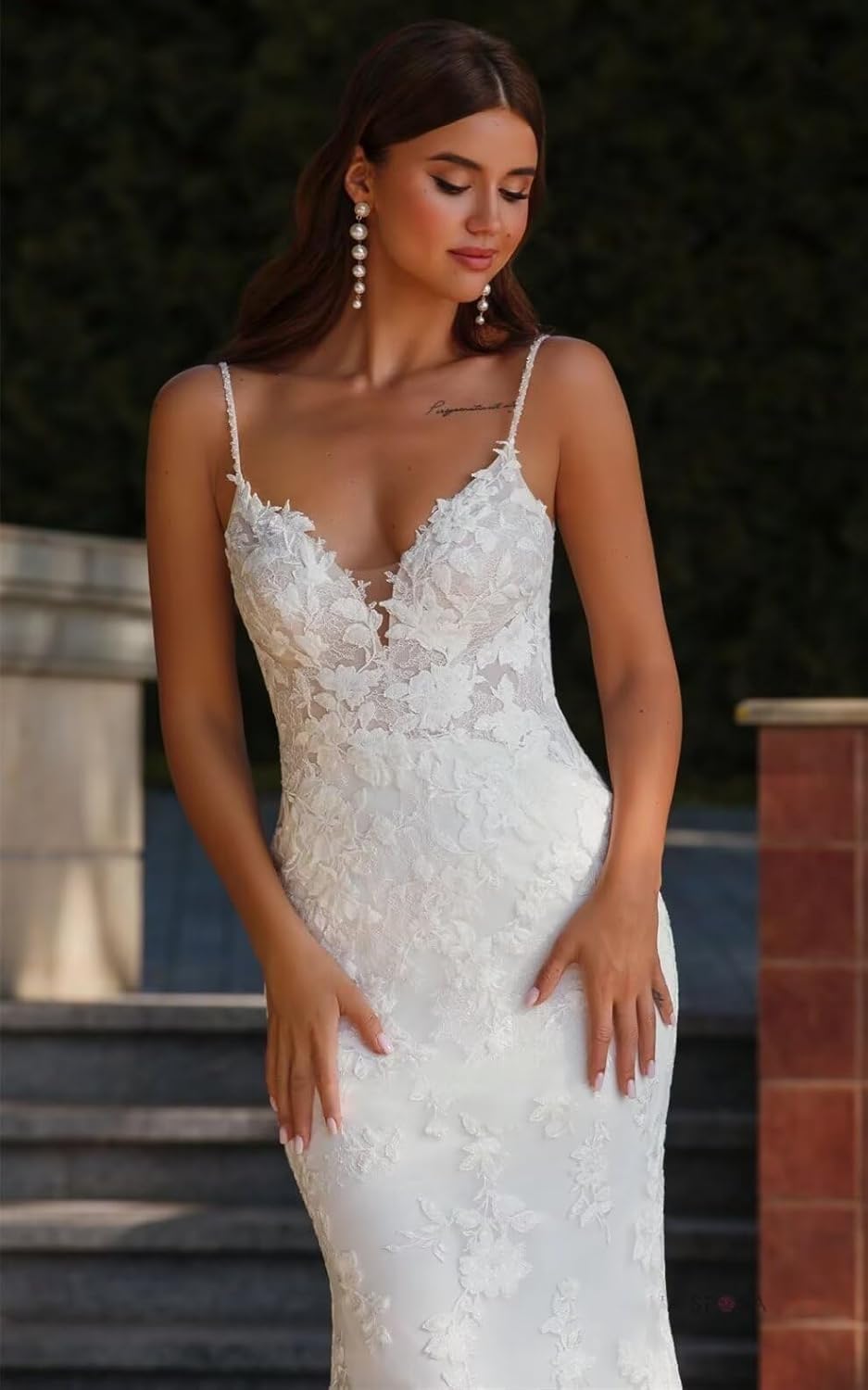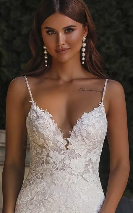Lace Applique Wedding Dresses for Bride Spaghetti Straps Mermaid V Neck Long Bridal Gowns 2025