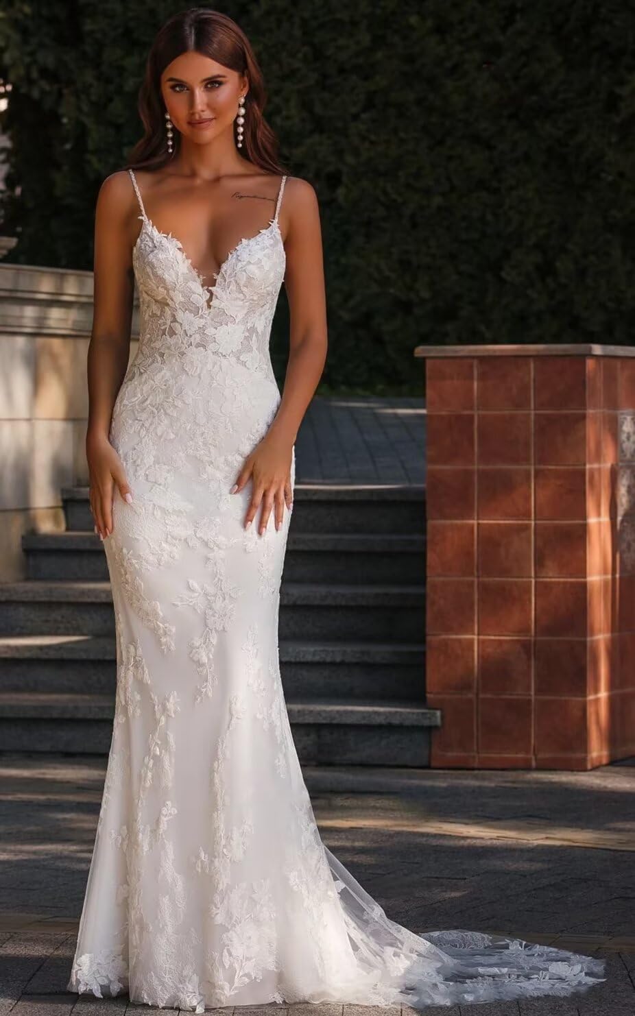 Be the first to review “Lace Applique Wedding Dresses for Bride Spaghetti Straps Mermaid V Neck Long Bridal Gowns 2025”
