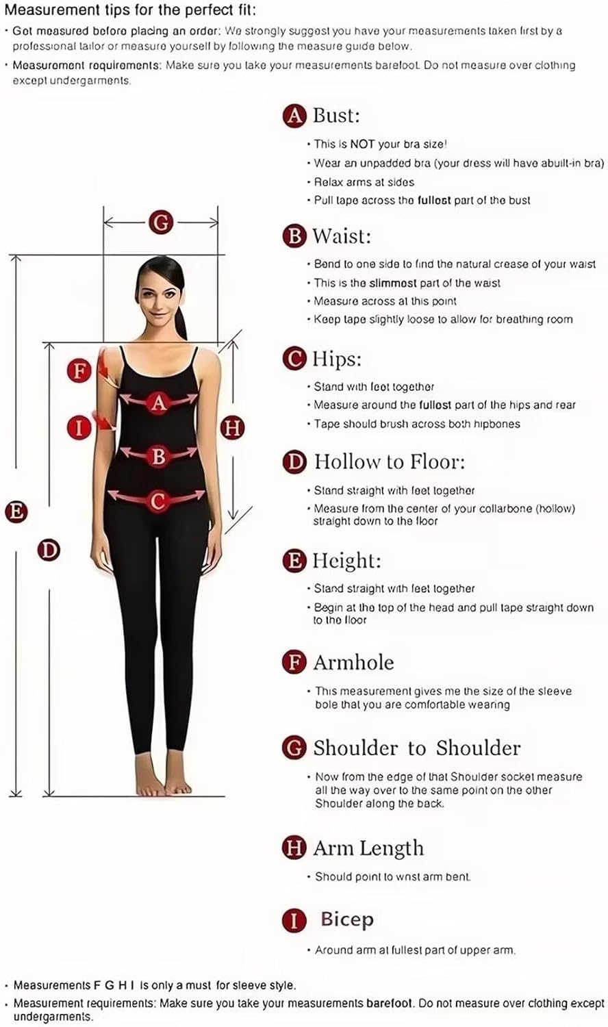 - ✿【Free customization】If you are not sure which size is suitable for you, Just choose the size closest to your own size and send us the measurements of bust, waist, hips, hollow to floor/height,shoe height.