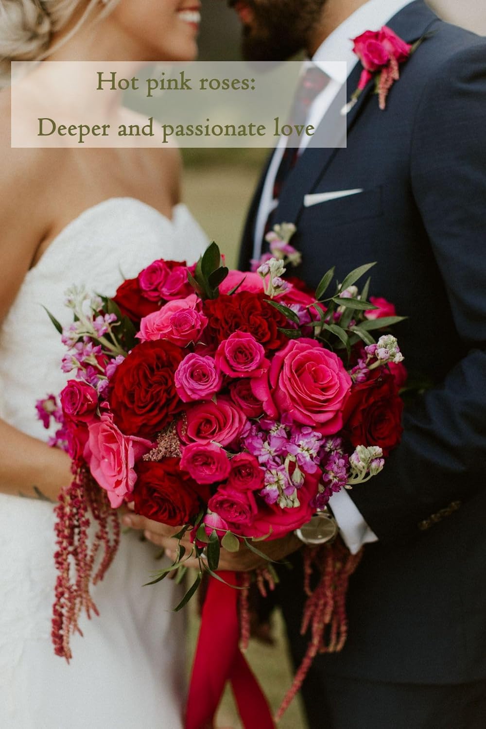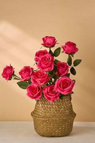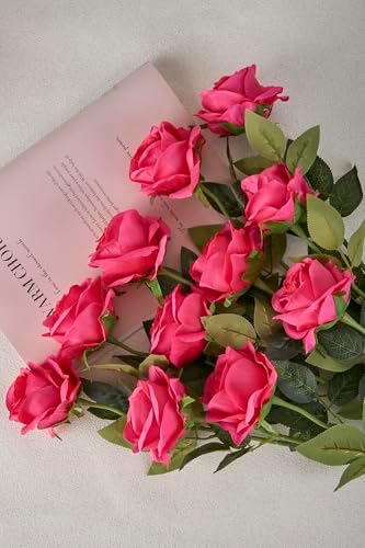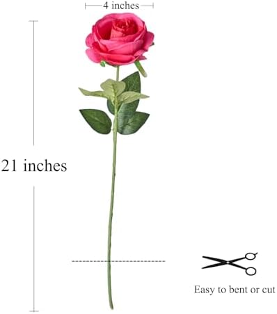 - 【MATERIAL】This artificial hot pink roses flower is made of 90% high quality silk + 10% plastic long stem(metal wire as skeleton is wrapped by plastic.). realistic fake flowers looks like fresh rose.