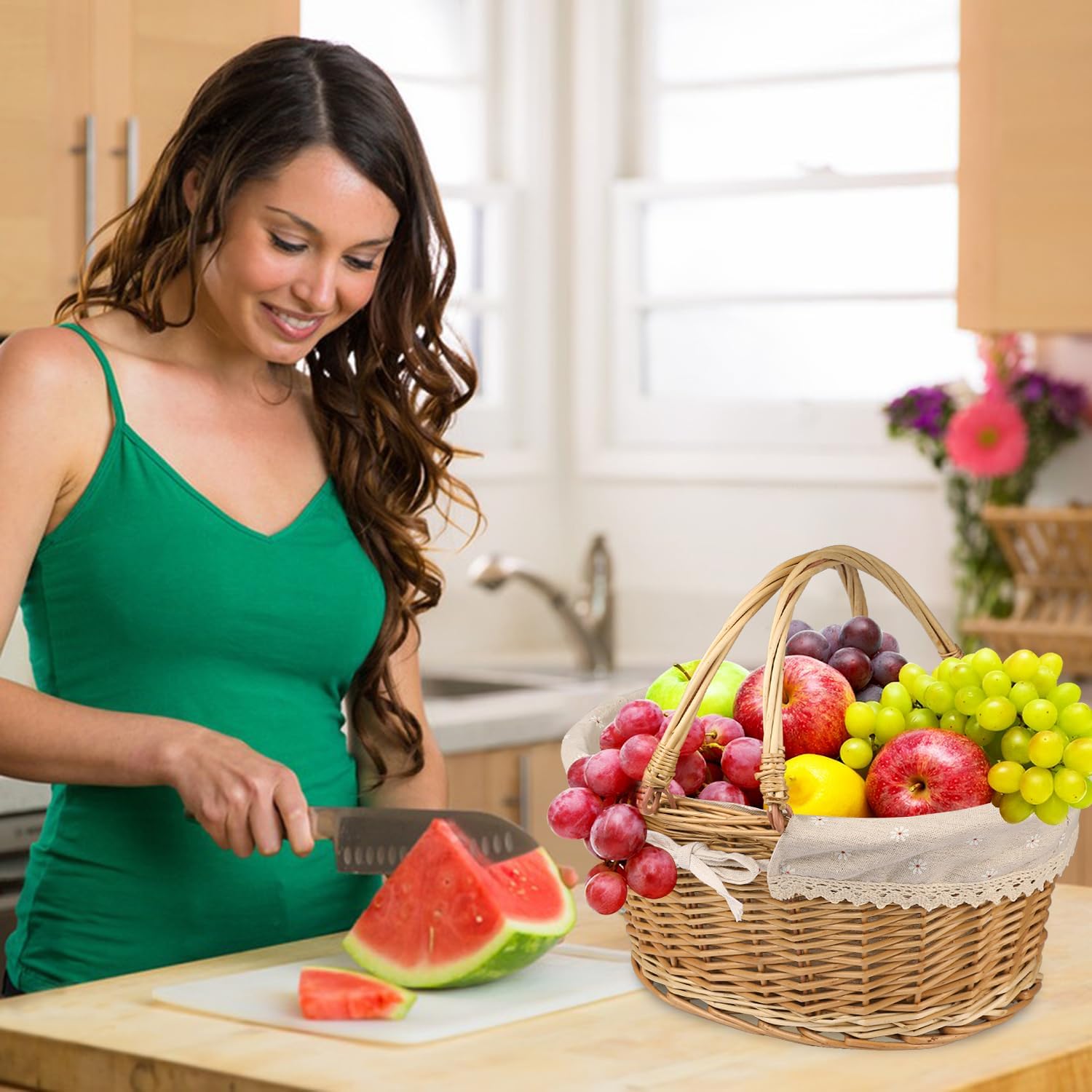 The Wicker Picnic Basket come with liner cloths that can be removed and washed, keeping the baskets clean and protecting the items inside. The basket is also great for carrying fruits, vegetables, and flowers from the garden.
