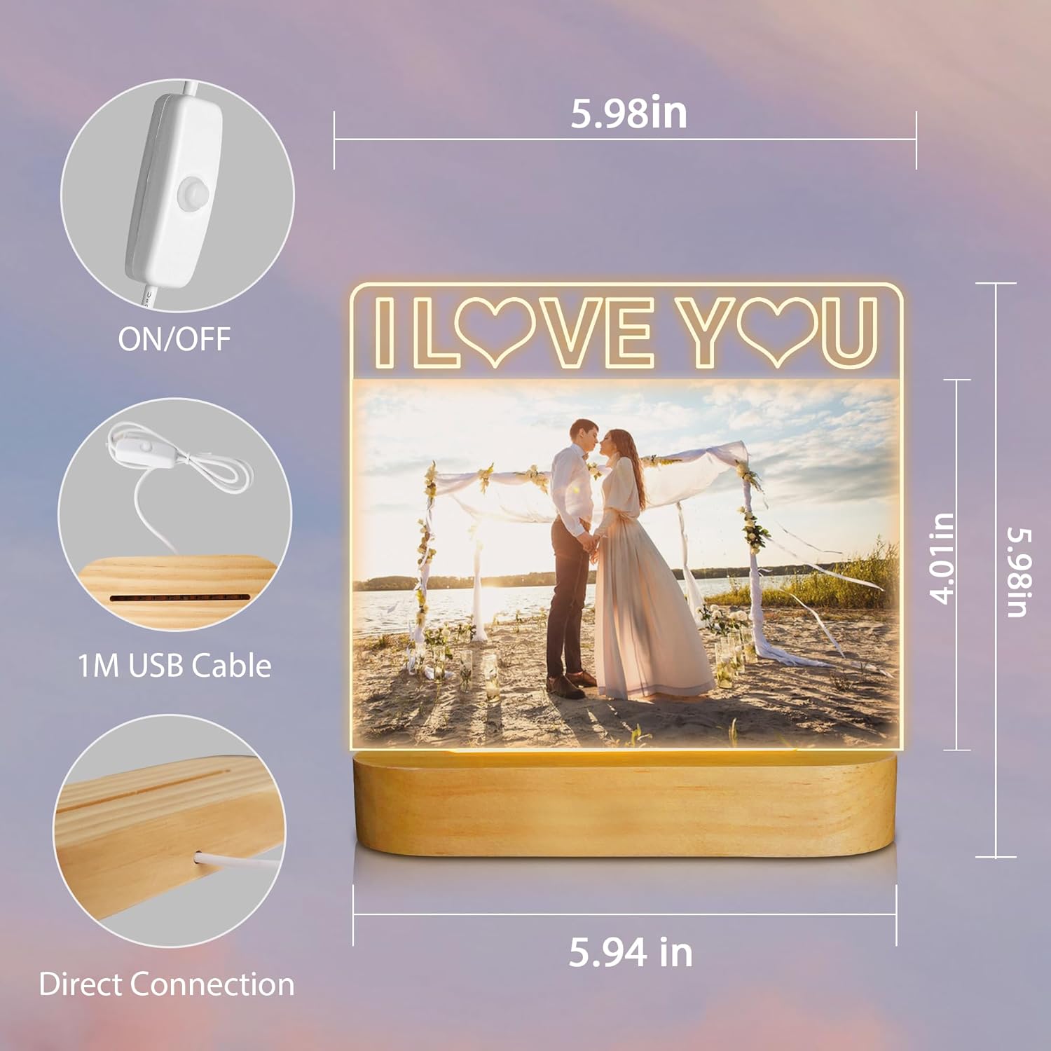 - 【Creative Gifts for Couple】This would make an awesome present for yourself or a loved one. The photo frame night Light is the best choice to express love and remembrance for mom, family, couples and friends, also a good decorative light for the wedding, home, desk, bedside, table and office. Our lovely gifts will allow your fondest memories of that special day to endure