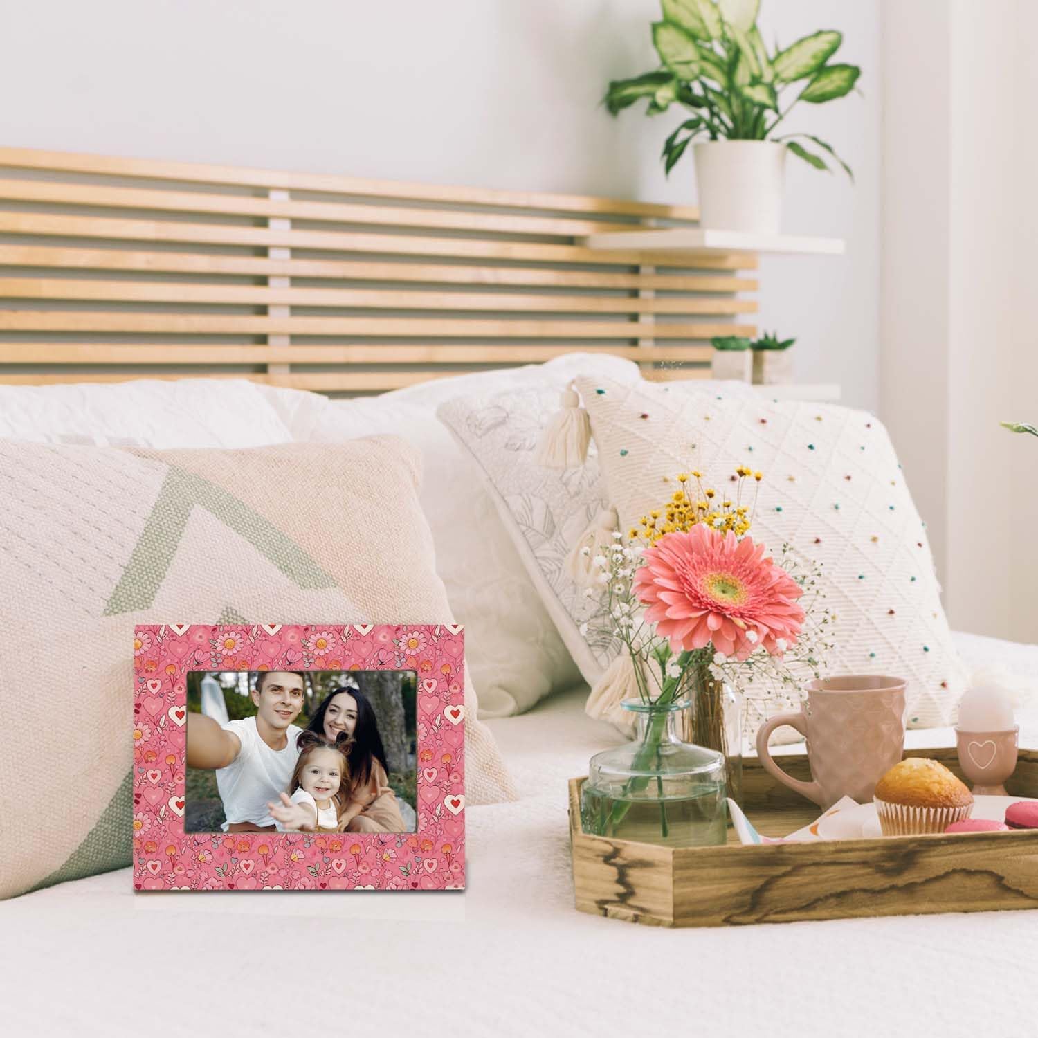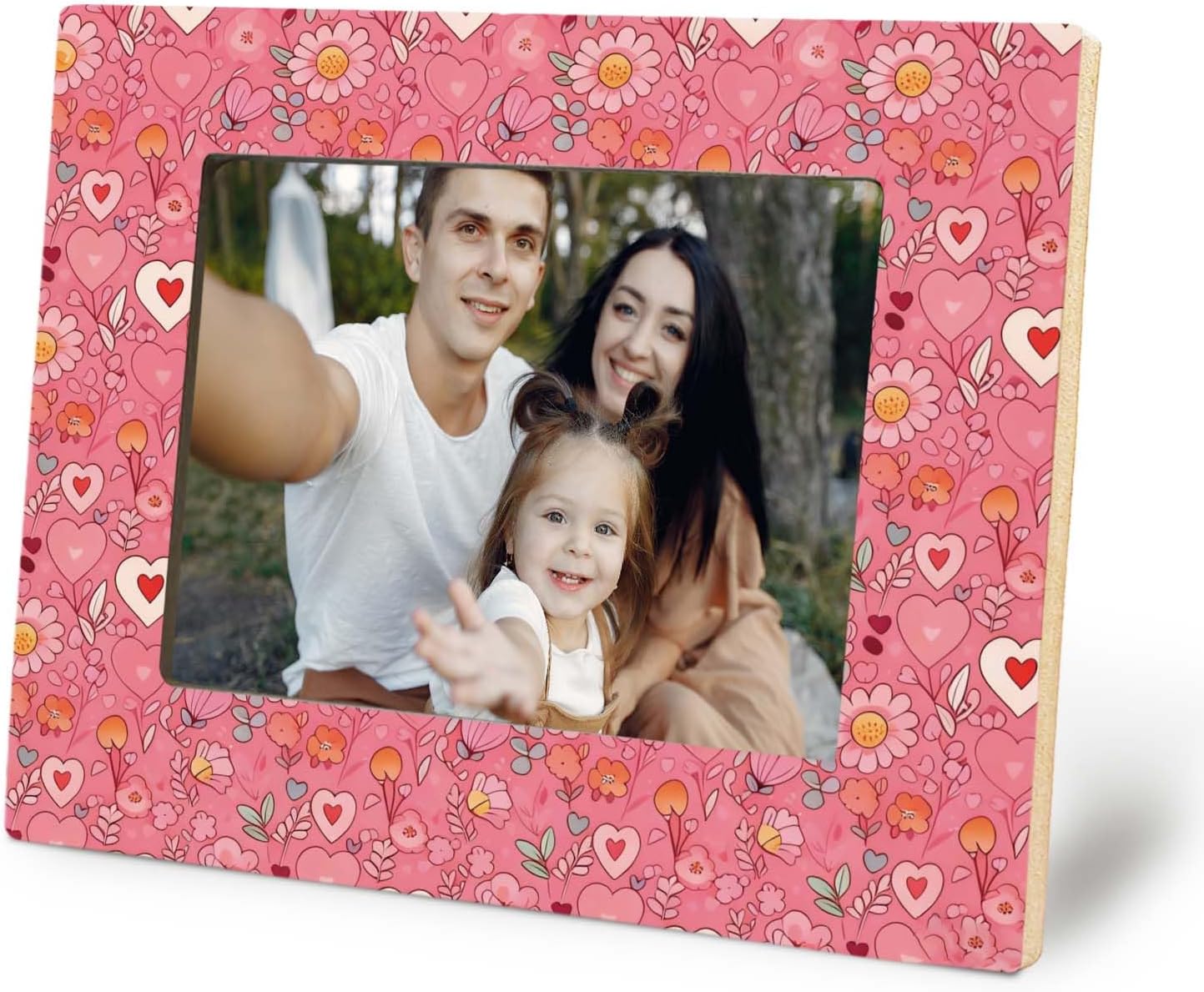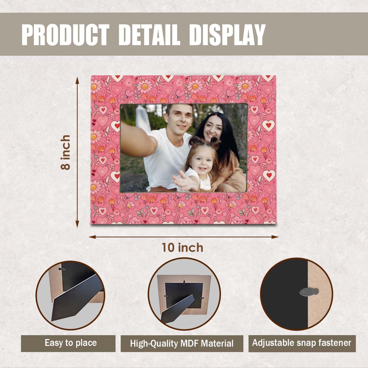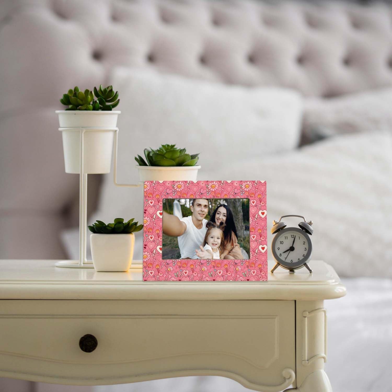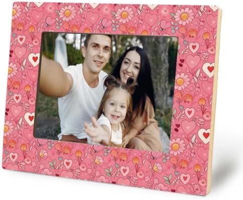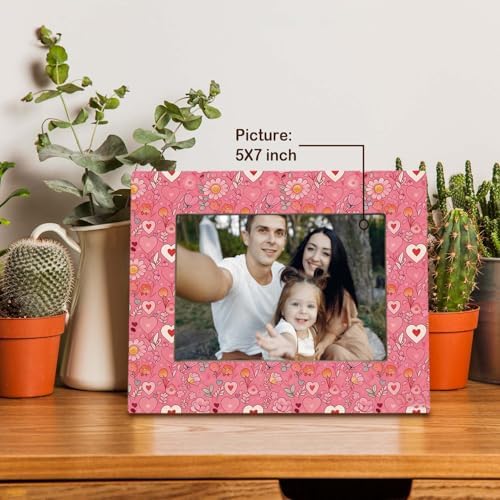 Likjad Cute Couple Picture Photo Frame, Valentines Day Gifts for Her Girlfriend Wife Women, Romantic Pink Floral Heart Wood Picture Frame for Home Bedroom Desk Tabletop Wall Display Decoration