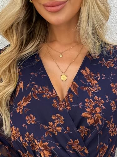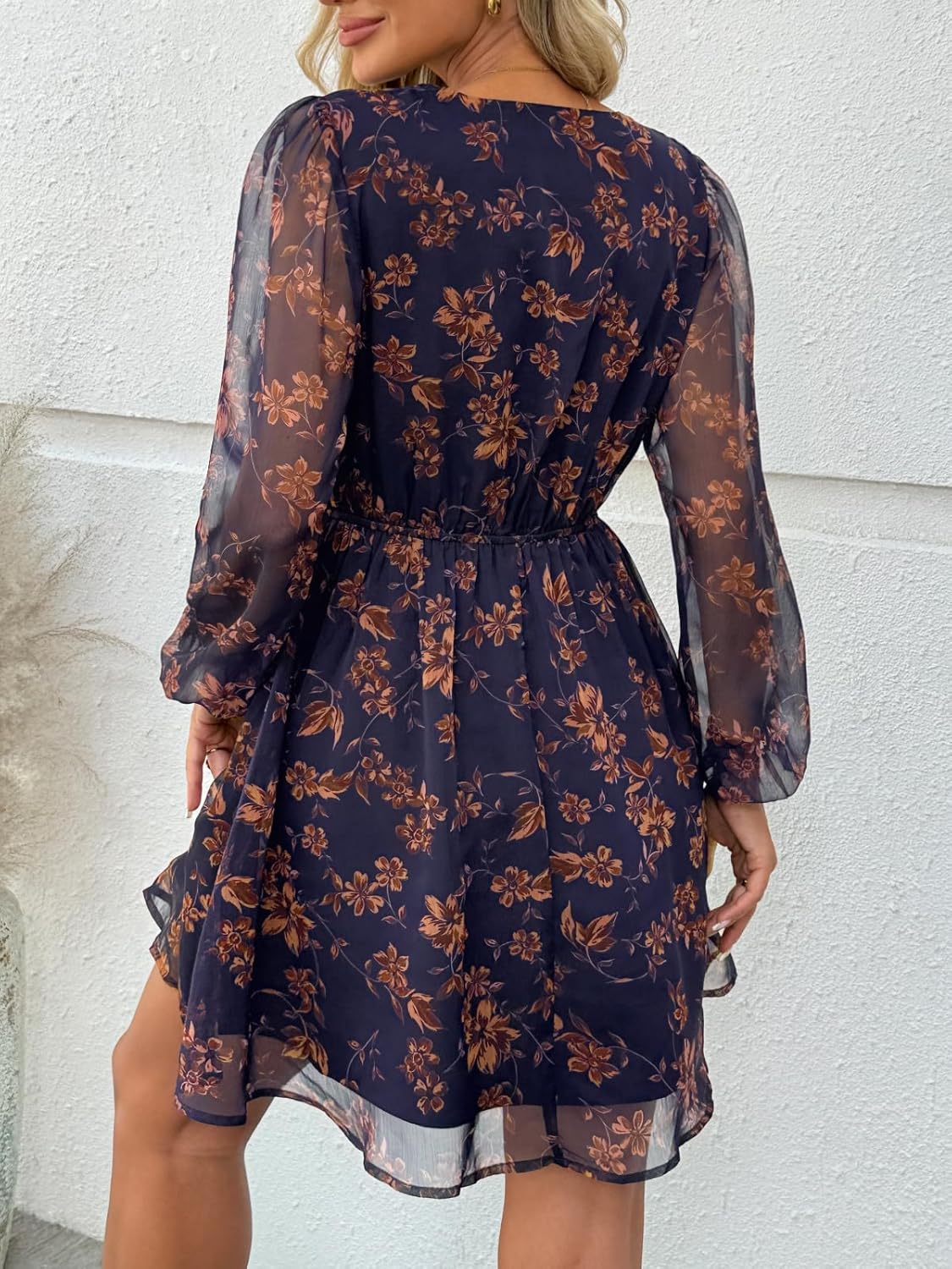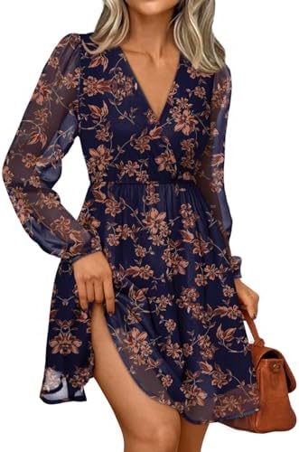 LILLUSORY Womens Mini Dresses Long Sleeve Casual Spring Fall Fashion Outfits V Neck Chiffon Cute Work Flowy Trendy Clothes 2026 Summer Dress