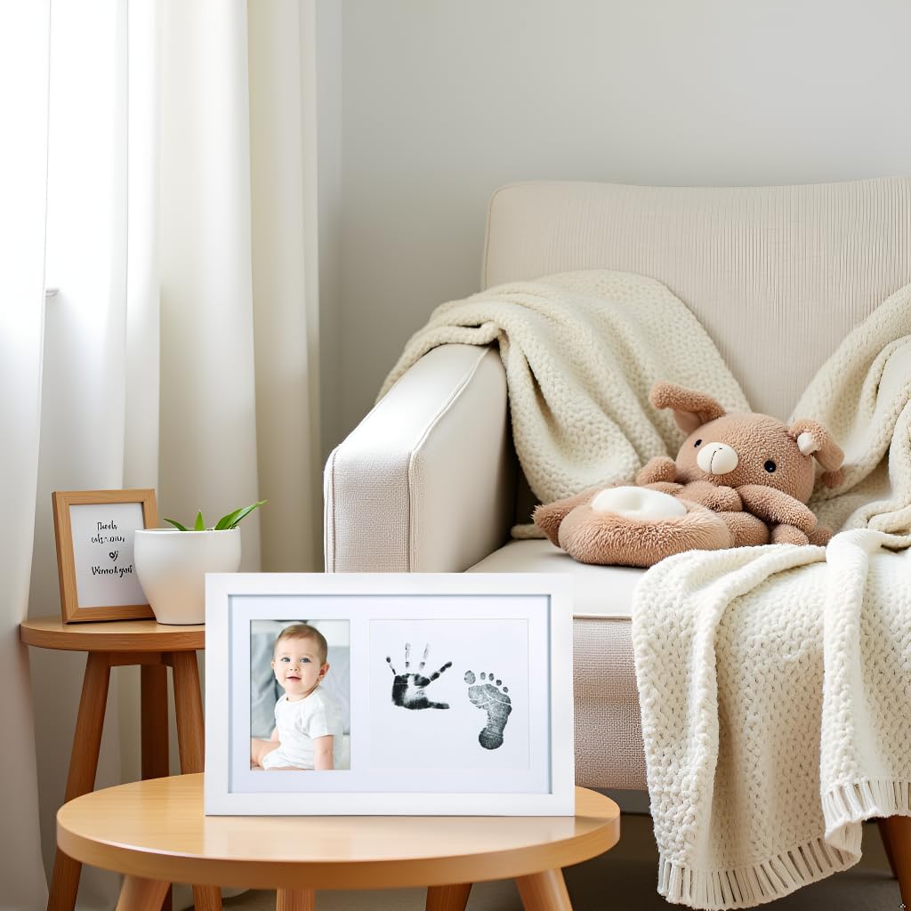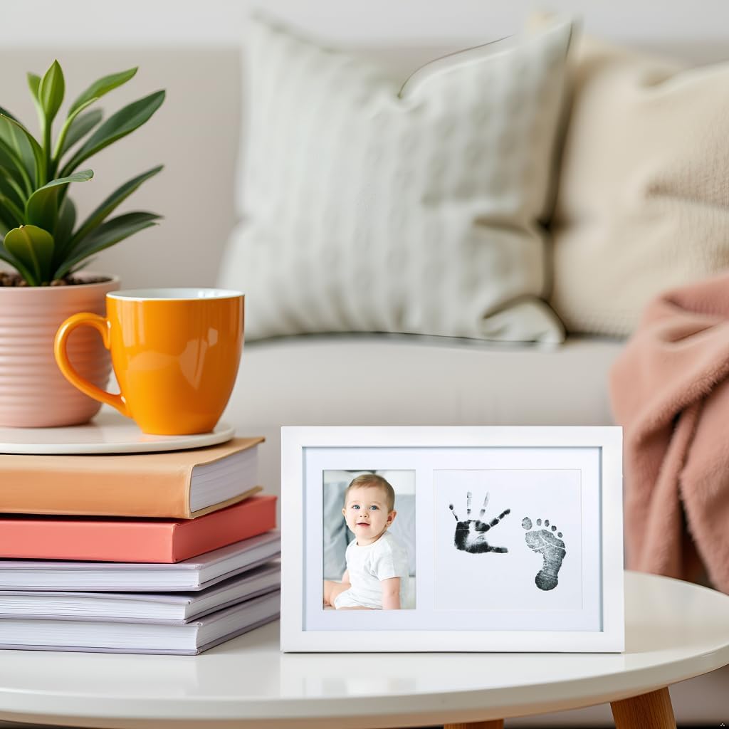 • Complete Baby Print Kit – Includes one white photo frame and one Clean-Touch ink pad with 100% nontoxic ink; ink pad is safe, easy to use, and designed for newborn baby handprints and footprints, up to two uses max