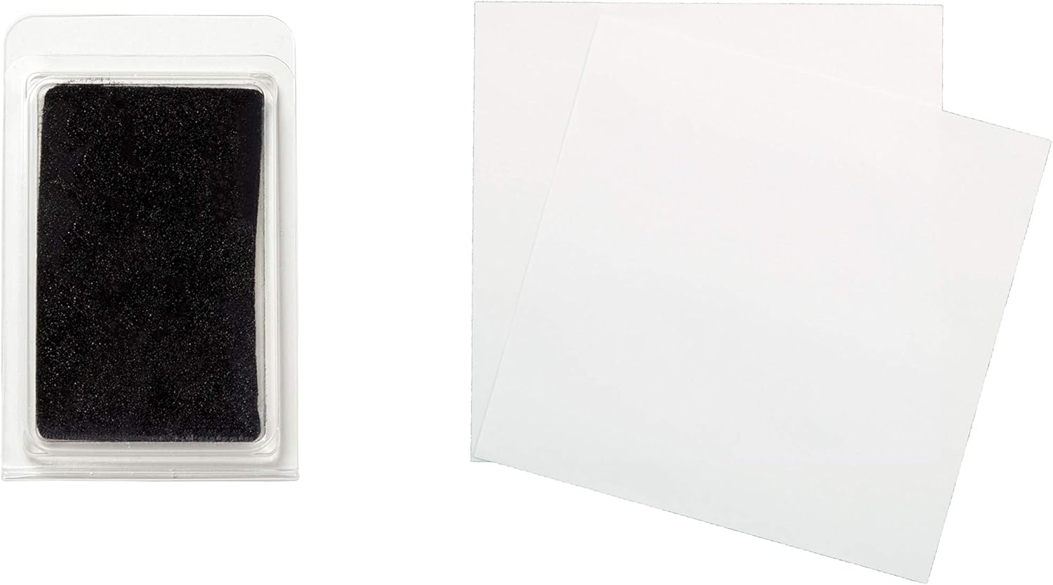 Remove everything from the packaging and place on a table or the floor. Place the clean-touch ink pad, ink side down on the included white, imprint card.