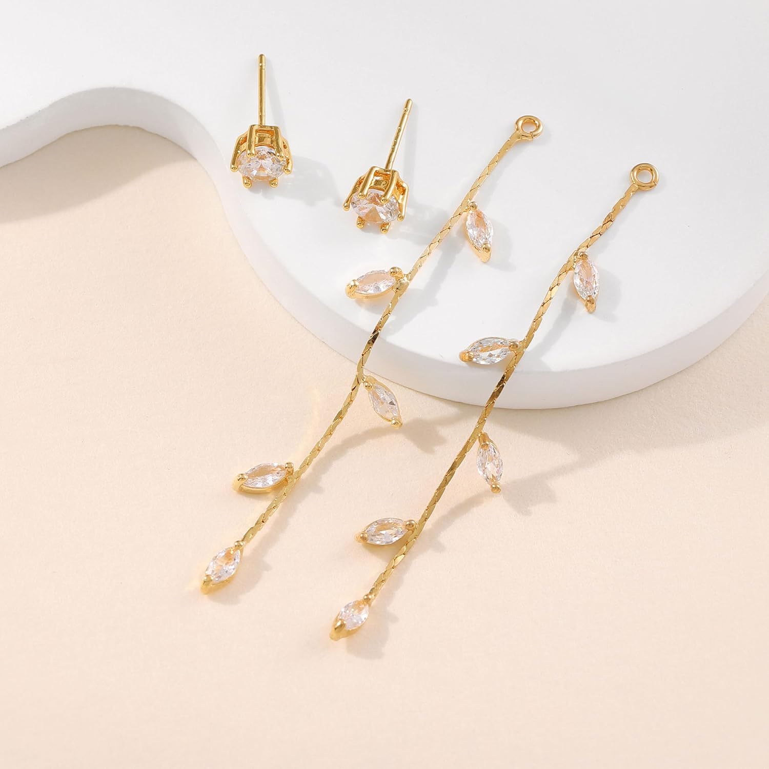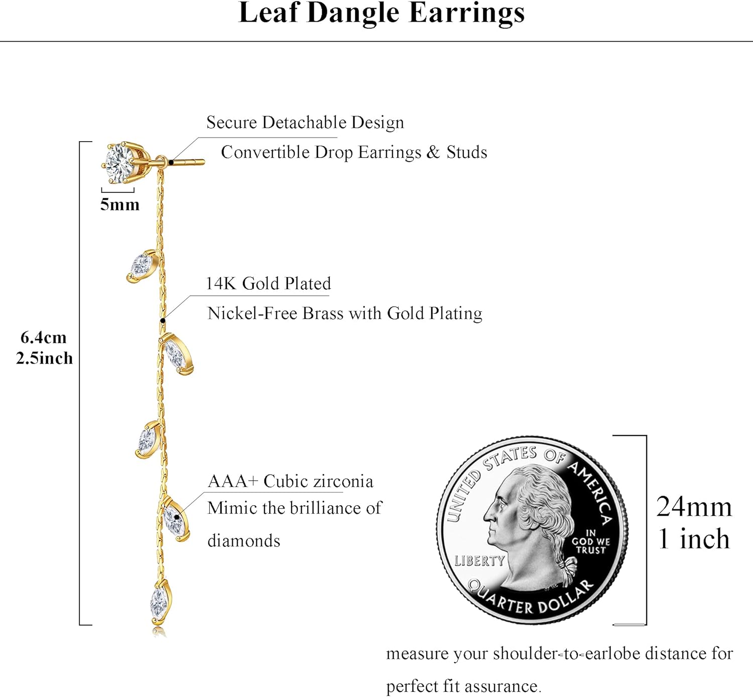 • Wedding CZ Earrings: Made from high-quality 14K gold and hypoallergenic sterling silver post, safe for sensitive ears.These dangling leaf earrings combine elegance with durability.