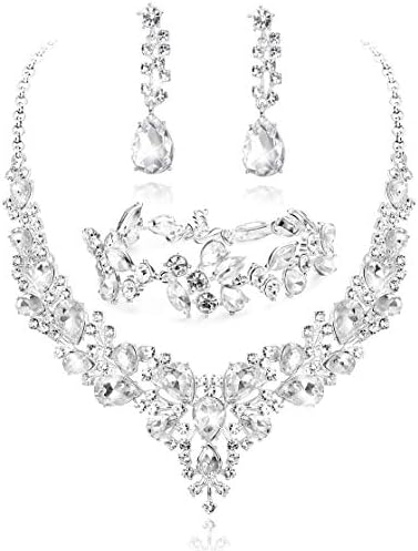 • BRIDAL JEWELRY SETS:This Wedding Jewelry Set Include Shiny necklace,Earrings And Bracelet.If You Are Going Out To A Party or Banquet, This Jewelry Is The Perfect Accessory It Features An Amazing Design And Will Suit Any Formal Or Casual Ensemble.