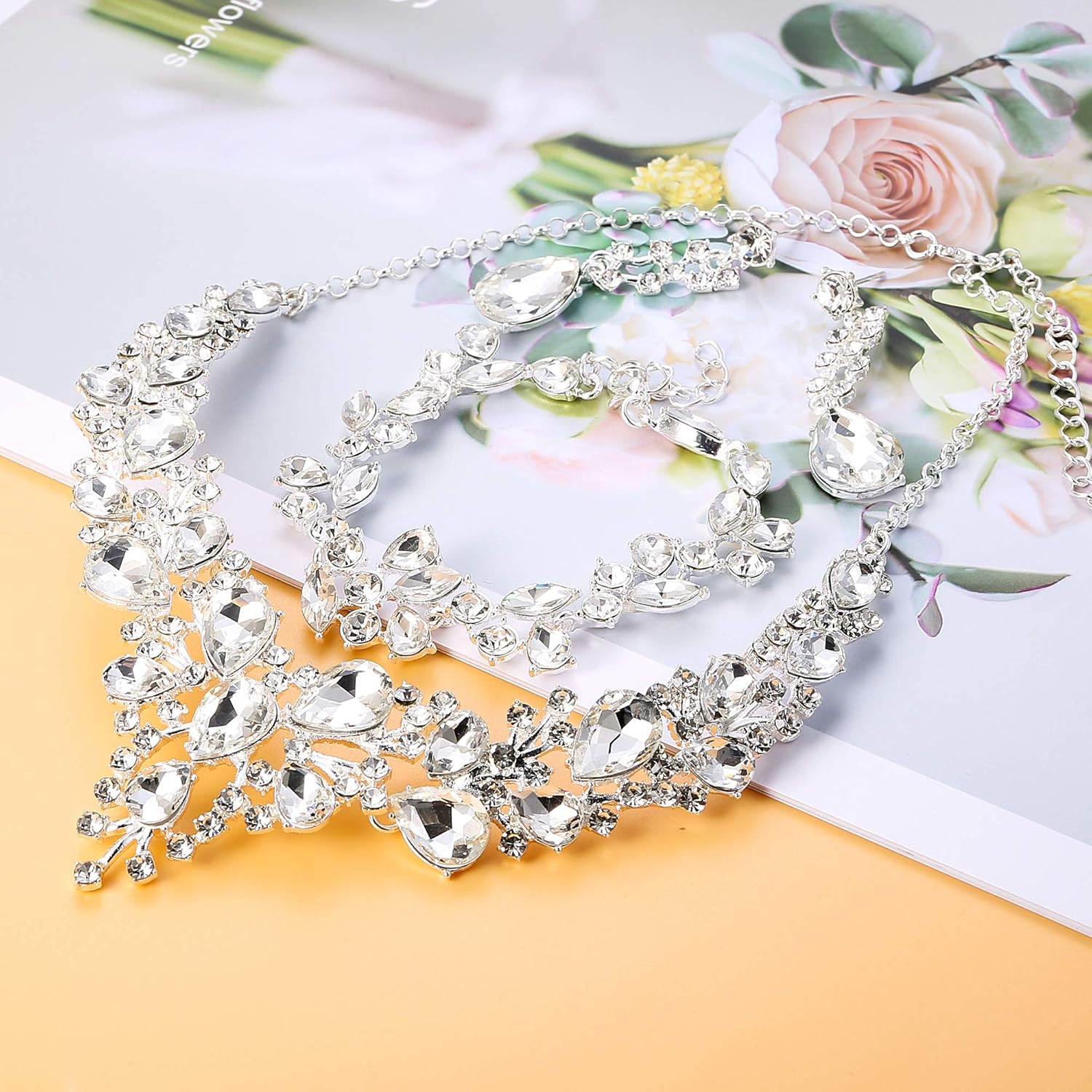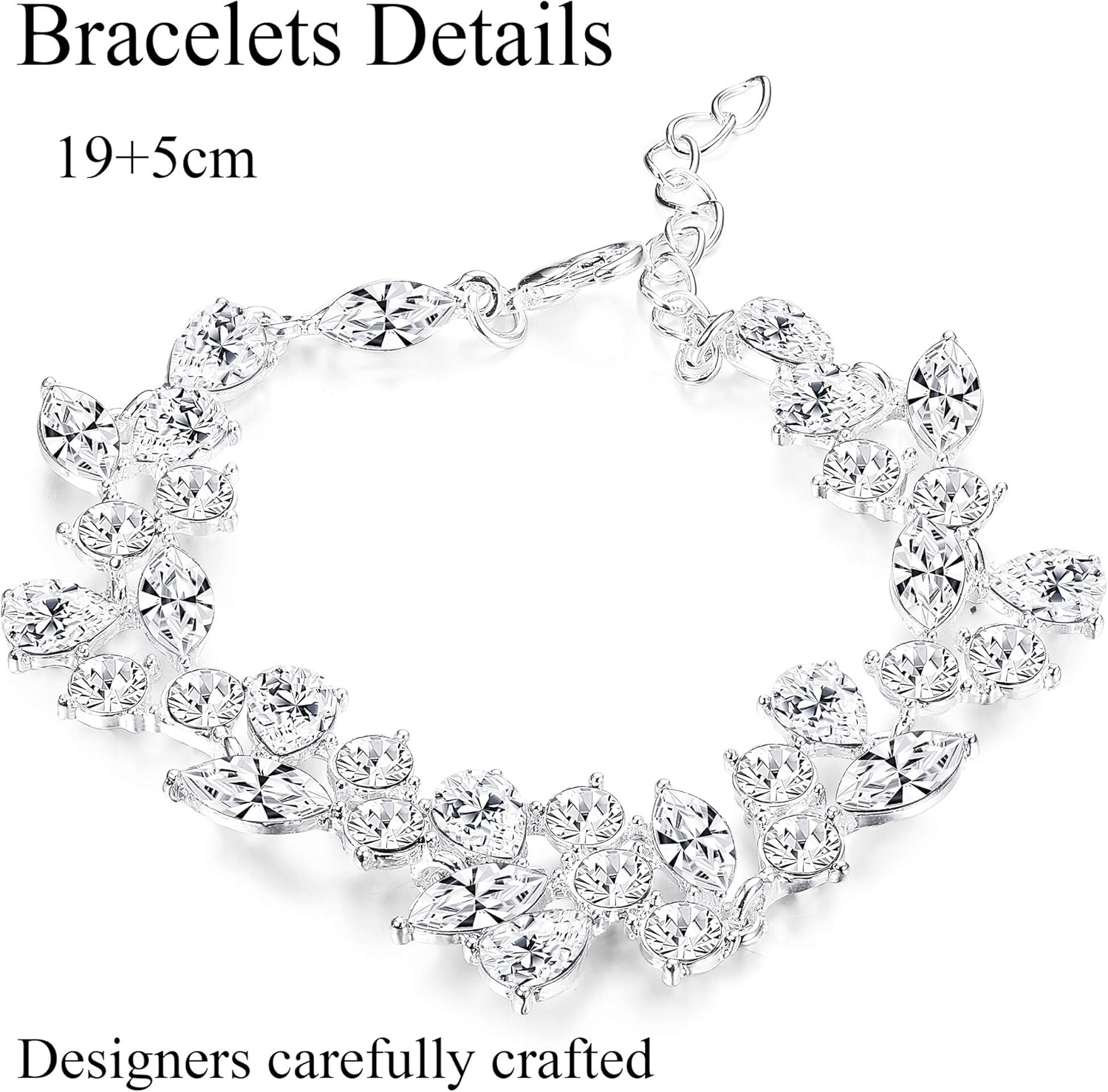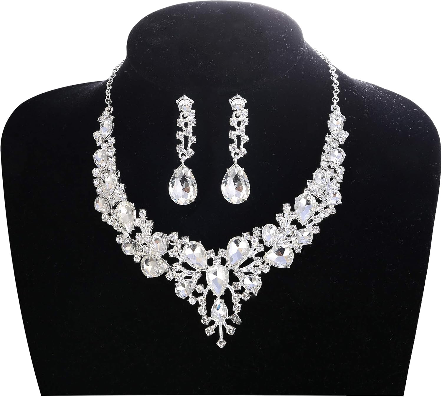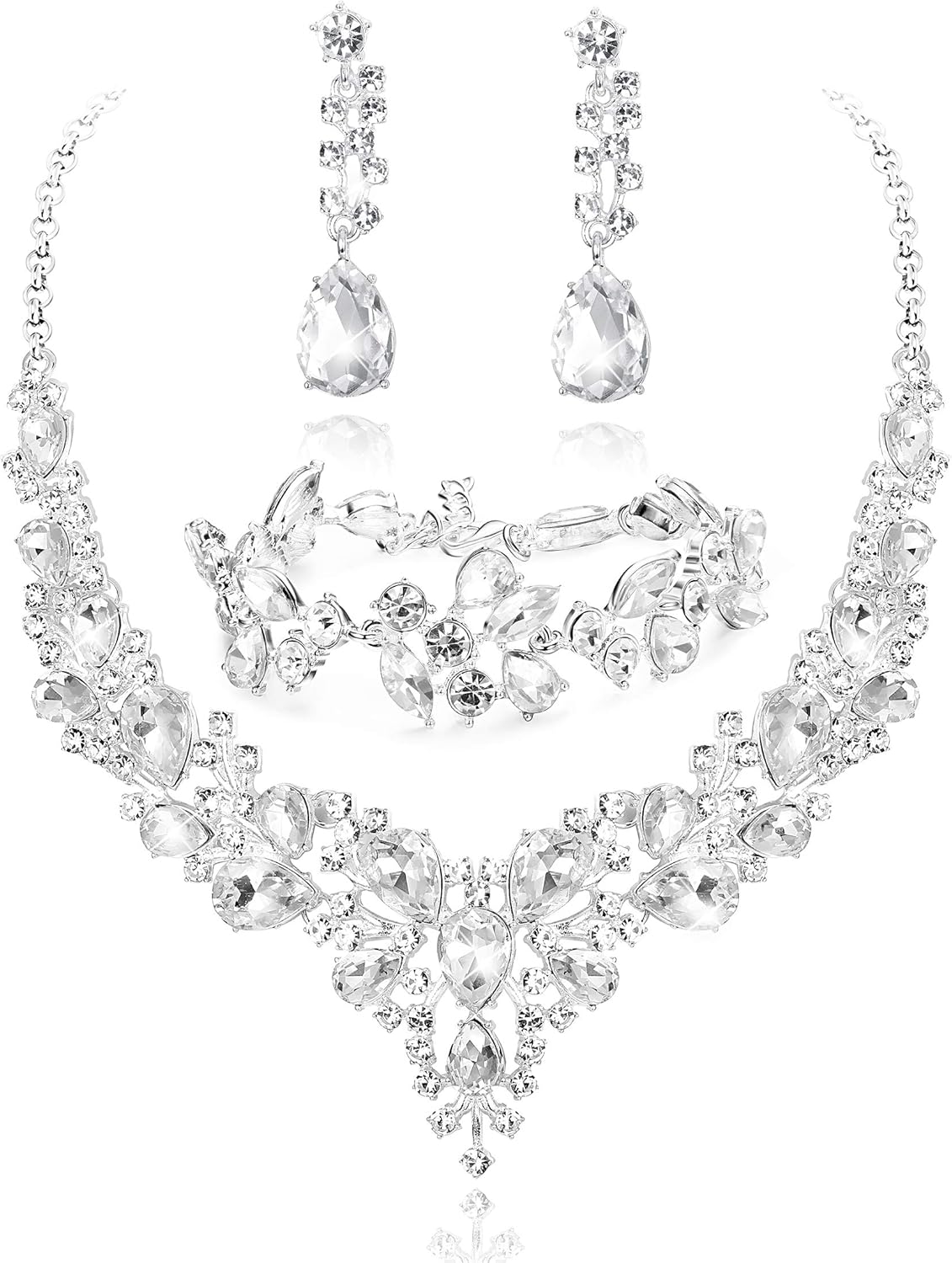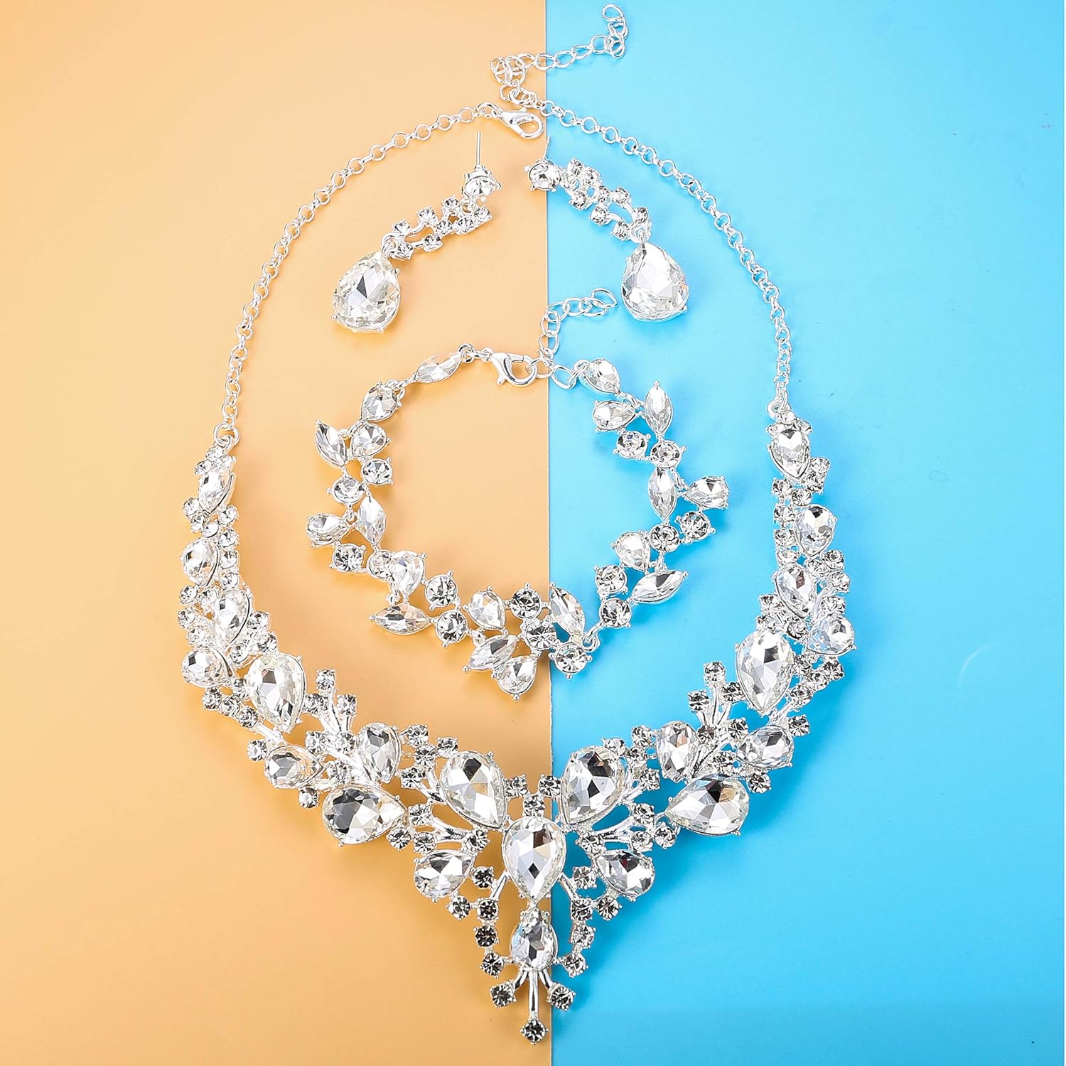 • RHINESTONE JEWELRY SIZE: Crystal Necklace Adjustable Chain Length 39cm (15.35’’)to 45cm (17.72’’), Bridal Drop Earrings Length: 5cm(2’’). Teardrop Bracelet Length: 19cm(7.4’’), With 5cm (1.97’’) Extension Chain, Easy To Adjust, No Worry About Size Problem.