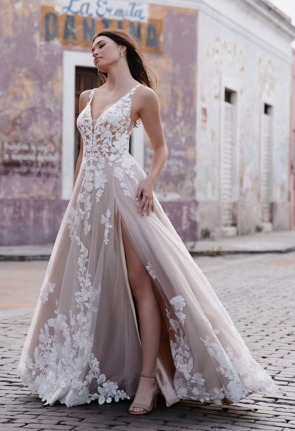 - Feature: Beautiful boho sexy slit wedding dresses for women , beach boheimian bridal dress , wedding gown with slit, sleeveless, with Built-in bra, beautiful wedding dresses for women 2025