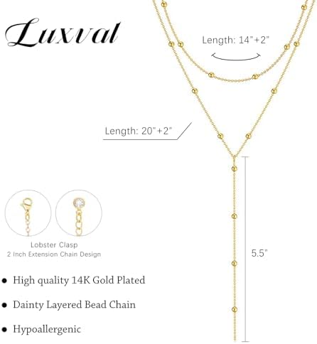 • ❤Gifts for Women❤ -Our delicate gold necklace comes elegantly packaged in our Luxval box, making it a perfect gift ready to be presented. Whether it’s for Mother’s Day, an anniversary, a birthday party, Valentine’s Day, or any other special occasion, our layered bead necklaces are ideal for gifting to your mother, wife, or any special woman in your life. This long gold necklace is the perfect gift to convey your love on any occasion!