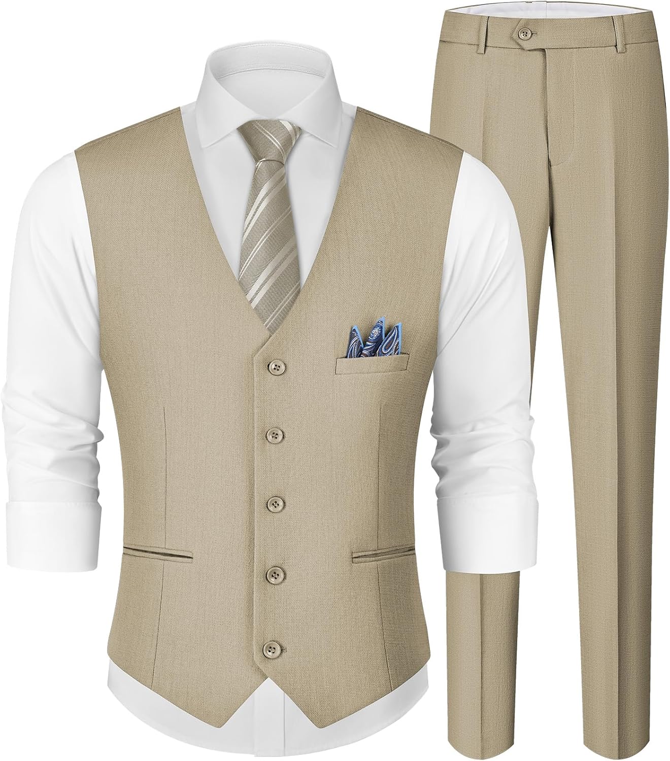 - 2 Piece? Actually 3 Piece! Vest and pants set comes with a high-quality pocket square valued at $10. Enjoy classic design and regular fit with top-notch tailoring for comfort and style