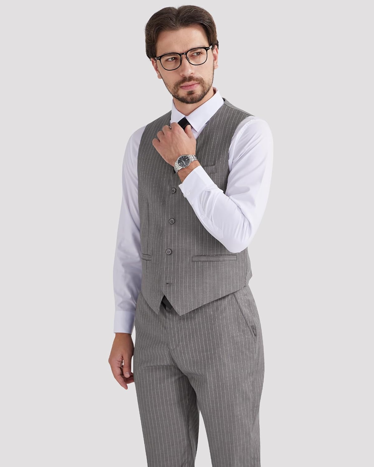 - Design:Perky in style. Excellent sewing thread is not deformed,neat,firm and wear-resistant workmanship.Vest and pants design makes great combination of business and leisure feature, suitable for more occasions. Resin button,simple and eco-friendly. Exquisite inner pocket shows iconic chic.