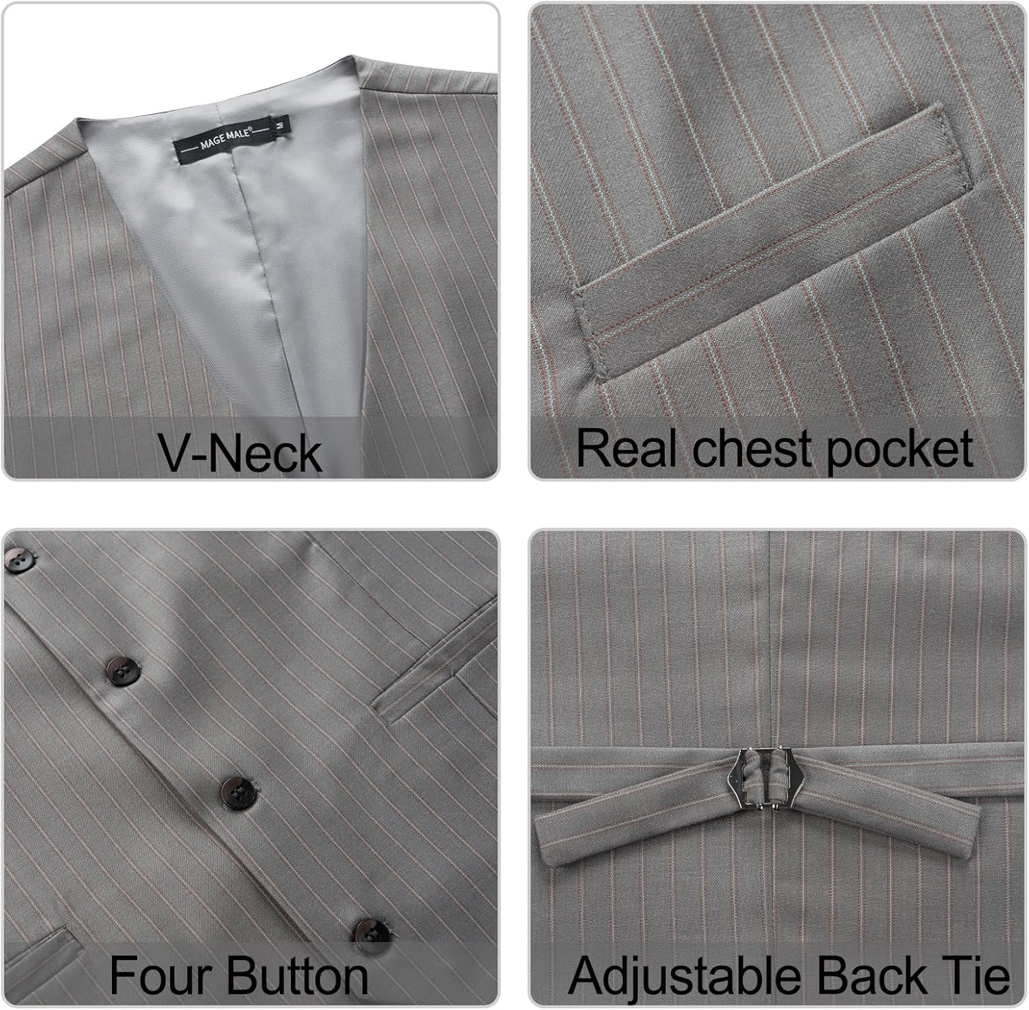 - Feature:Vest:Real chest pocket for place a decorative corsage,two side real pockets,Four Button,V-Neck,Smooth Back And Adjustable Back Tie,Slim Fit Style;Pants:Flat Front,Zippered Fly,Button End And Adjustable Waist Tab.