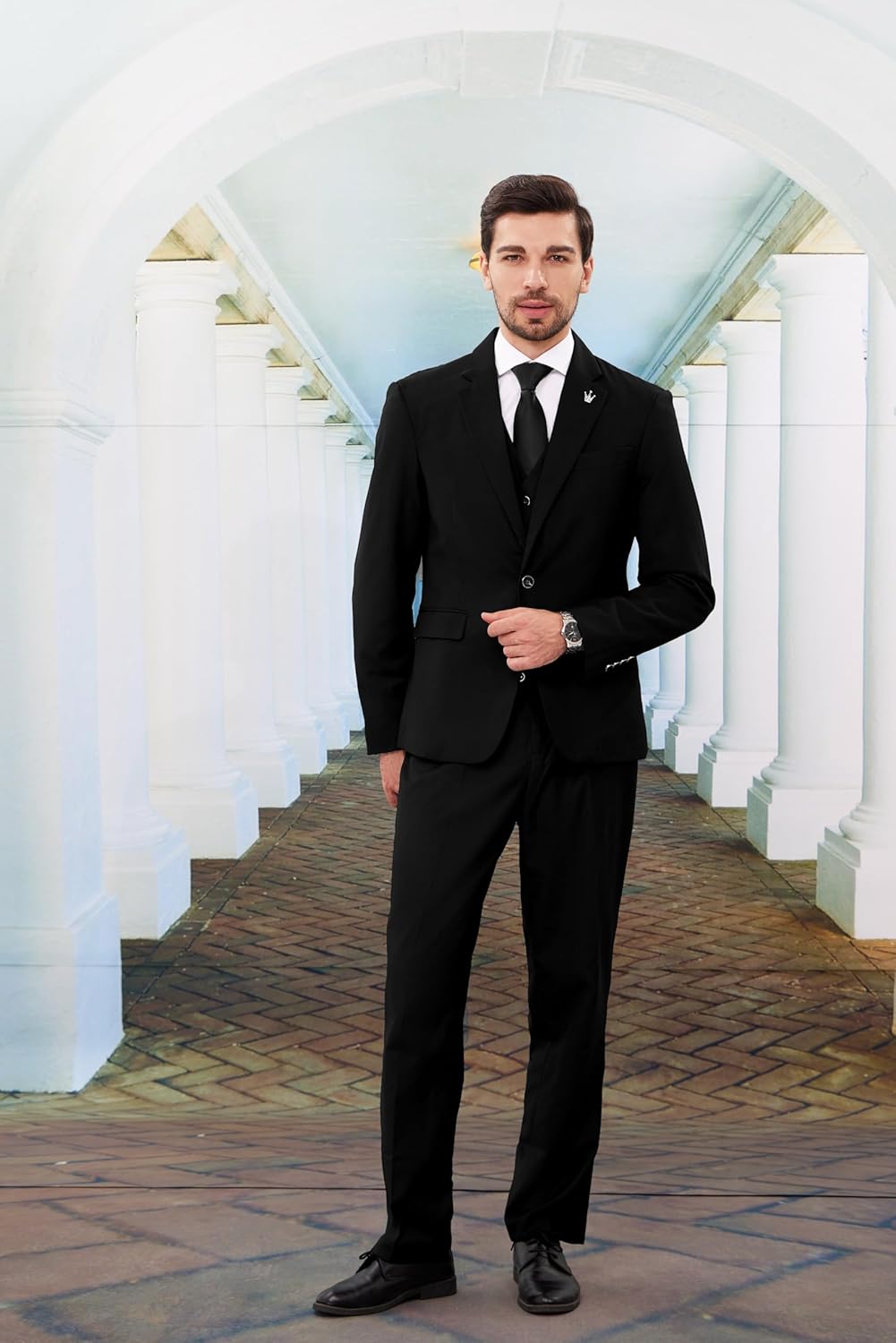 - Tailored to Perfection: The MAGE MALE 3-Piece Slim Fit Suit Set offers a tailored fit that enhances your physique while maintaining comfort. The notched lapel, one-button closure and dual back vents of suit jacket enhance breathability and freedom of movement, showcasing a blend of timeless style and practicality