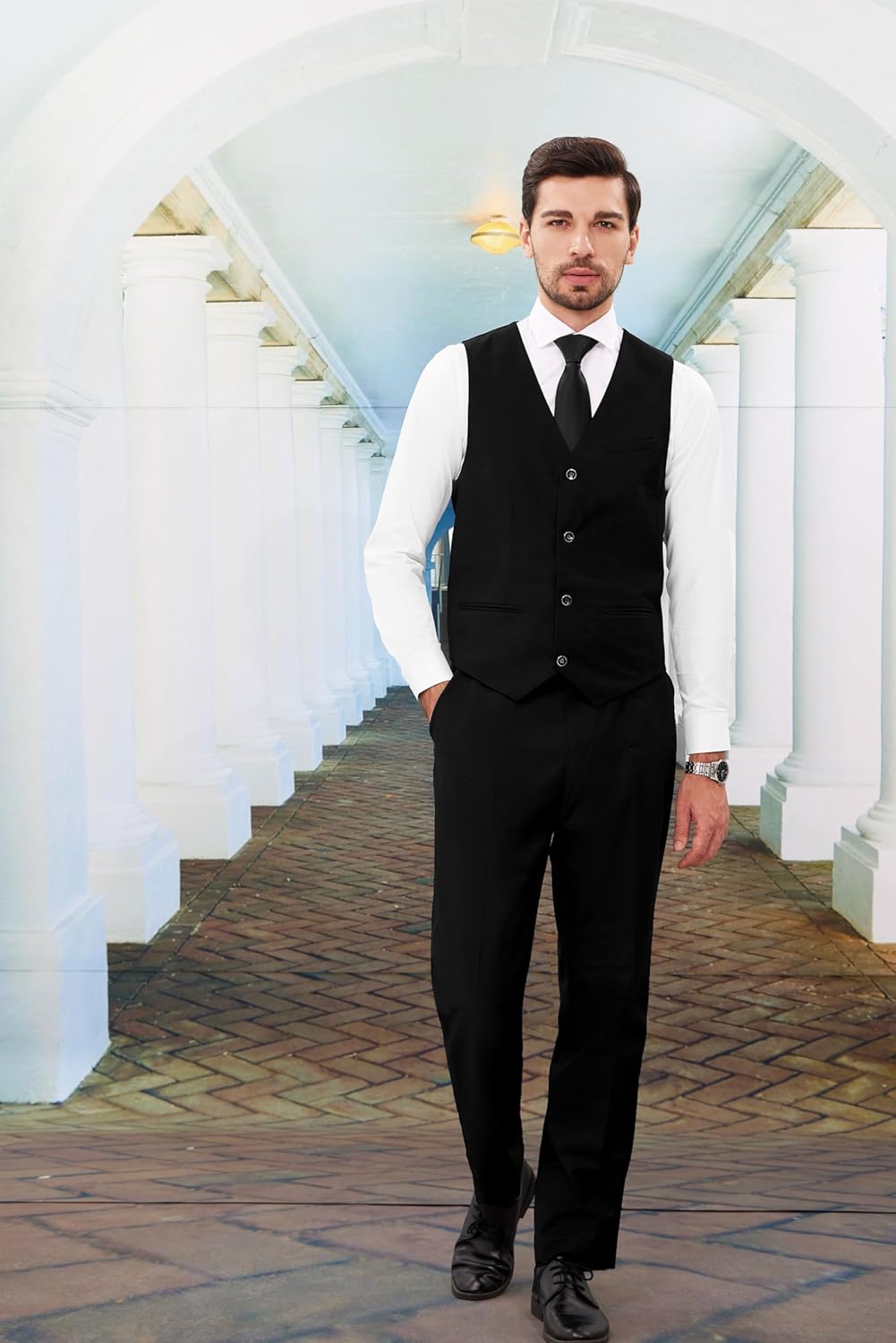 - Versatile Vest and Adjustable Waistband: The vest’s 4-button design adds visual interest and a refined touch to your look. The adjustable back belt allows for a customizable fit, ensuring comfort even during long events. The trousers feature a waistband with adjustable elastic, letting you achieve the perfect fit without sacrificing style
