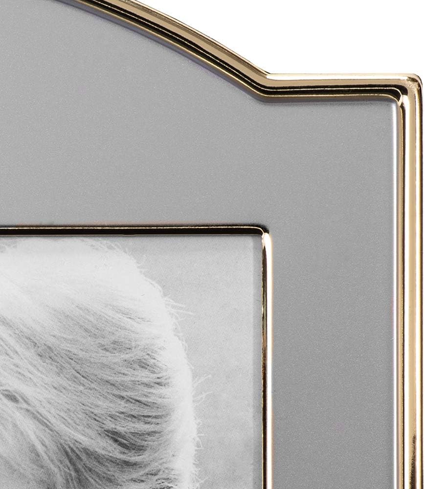 • PREMIUM QUALITY MATERIALS: This photo frame is constructed of two-tone, dimensional Matte Silver finish and Shiny Gold finish metal. Freestanding, easel backed picture frame. Change photos easily with swing tab closures. Attached hardware makes wall hanging easy. Durable glass front will protect and showcase your precious photos