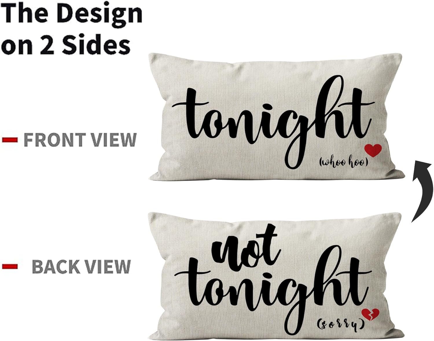 - Dual-sided Design: Enjoy the versatility of two charming patterns – “Tonight” and “Not Tonight.” Playfully set the mood by flipping the pillow to match your desires, adding a touch of fun to your bedroom or sofa.