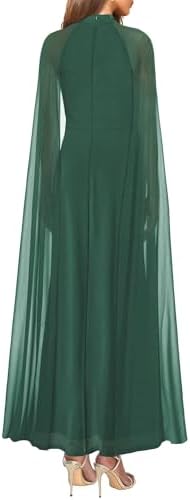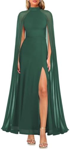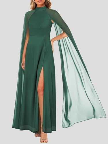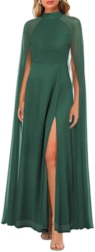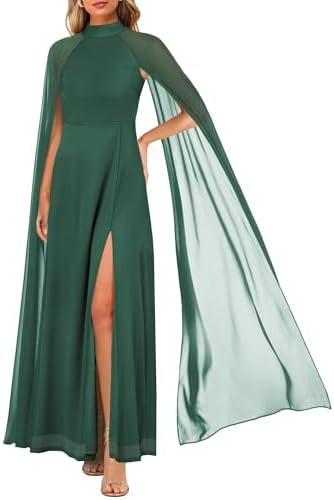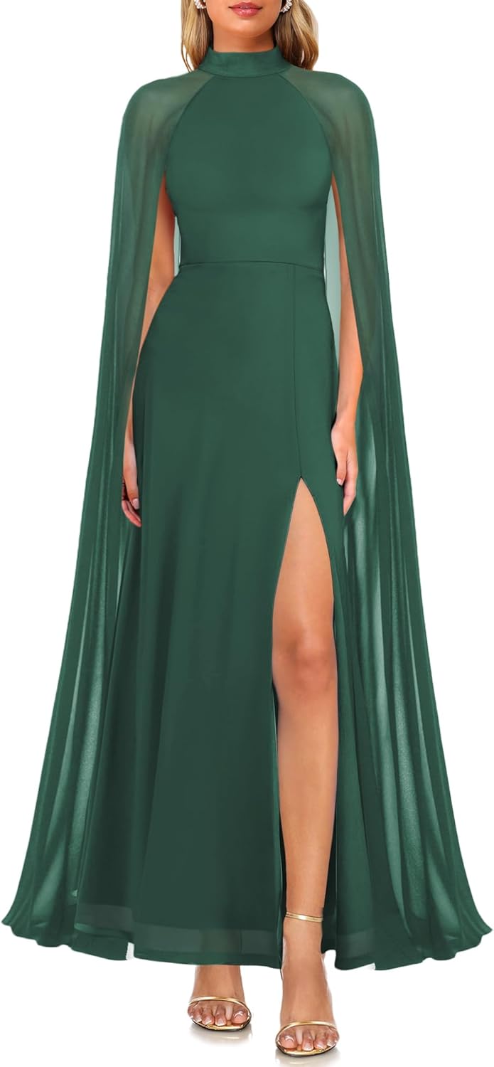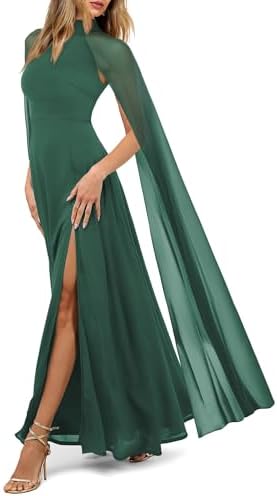 MAYFASEY Womens Elegant Long Sleeve Halter Neck Sexy Split Cocktail Evening Party A Line Maxi Long Formal Dress with Cape