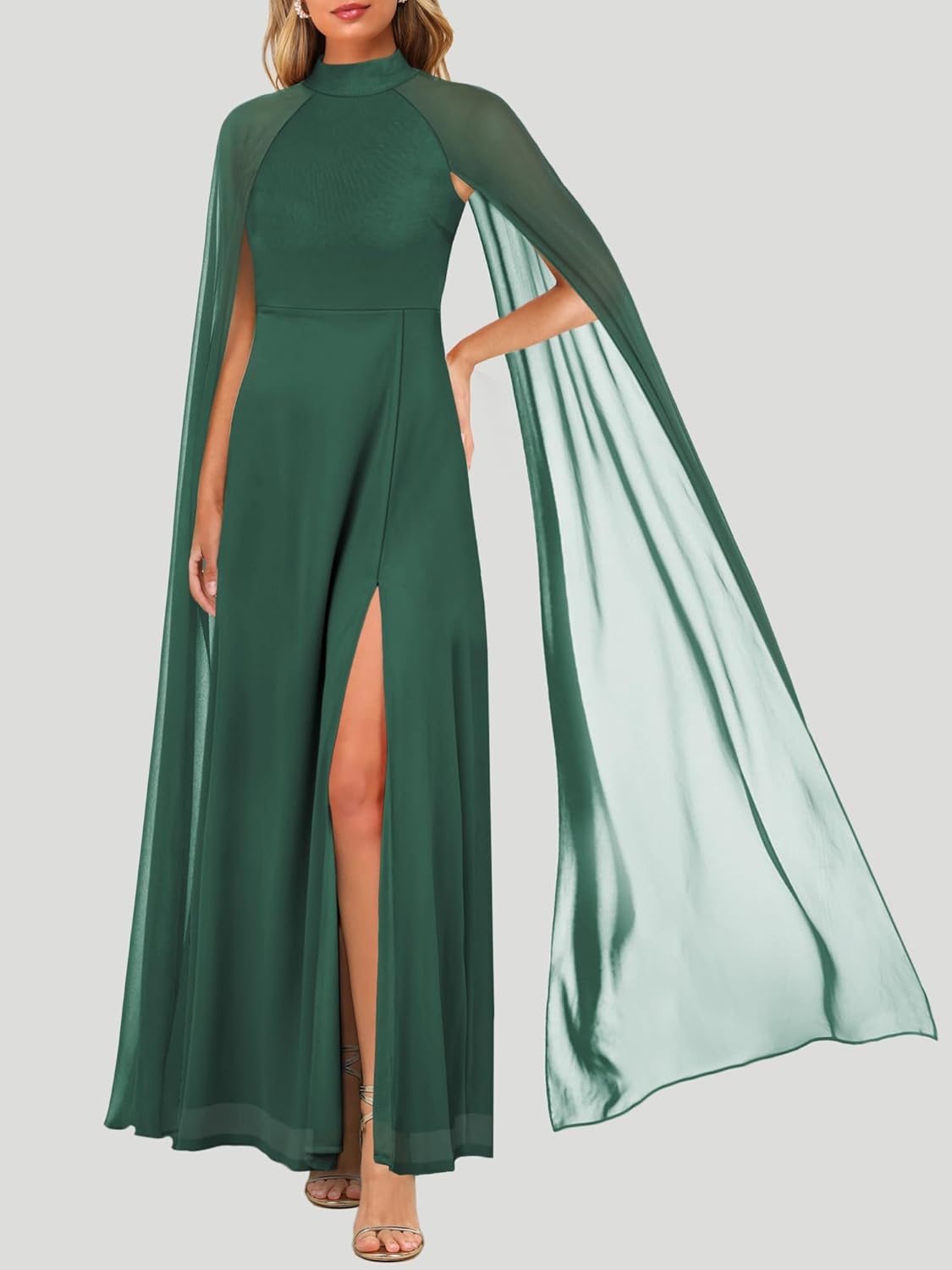 • Design:Formal party dress features with long sleeve, cape design, sexy halter neck, high split, long length, a line dress, mesh dress, zipper at back, bodycon maxi dress, classic solid color.