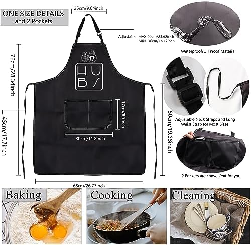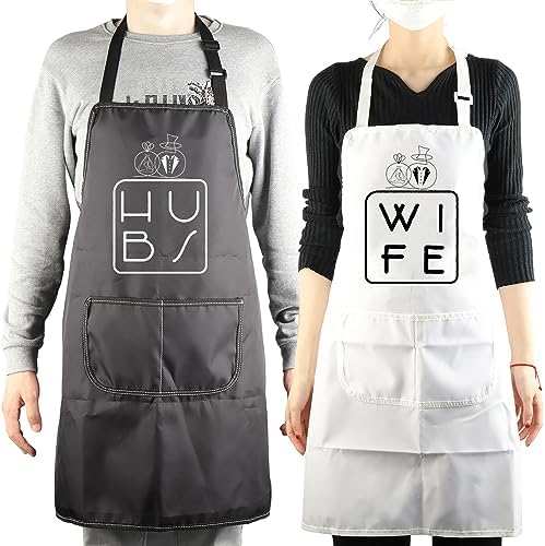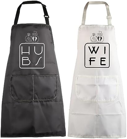 • [PURPOSE STYLE]: Couples hubby wifey gift for his and hers apron – Couples waterproof aprons are protecting your clothes from spills and stains while you are cooking, baking, painting, gardening, etc. Applicable for kitchen cooking, barbecue parties, birthday parties, painting room, gardens, farm, kitchen,and other occasions, also great for cleaning, painting, serving, flipping furniture and many more.