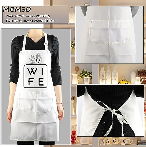 MBMSO Husband Wife Apron Set Hubs Wife Apron Wedding Gift for Couples His and Hers Cooking Aprons Hubby Wifey Engagement Gift