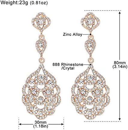 - ✦ SAFE TO WEAR ✦ Earrings Size: 3.14″(80mm) (L)* 1.18″(30mm)(W) Earrings Weight: 0.81oz(23g). You can comfortably wear these pairs of rhinestone chandelier bridal wedding dangle earrings all day long. These are safe for sensitive ears. LEAD-FREE,NICKEL-FREE,MERCURY-FREE AND HYPOALLERGENIC