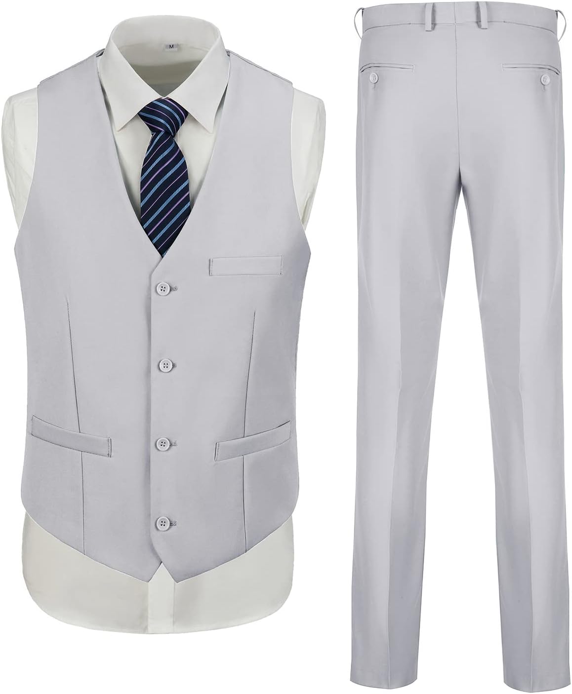 - Package Includes: Blazer+Vest+Pants,Blazer: Two Button Closure,Single Breasted,Notch Lapel,Side Vents;Vests: Four Button,V-Neck,Smooth Back and Adjustable Back Tie;Pants: Flat Front,Zippered Fly,Button End and Adjustable Waist Tab.