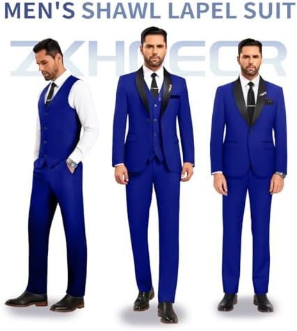 Mens 3 Piece Slim Fit Suit One Button Shawl Lapel Jacket Vest Pants Tuxedo Set with Bow Tie Pocket Square