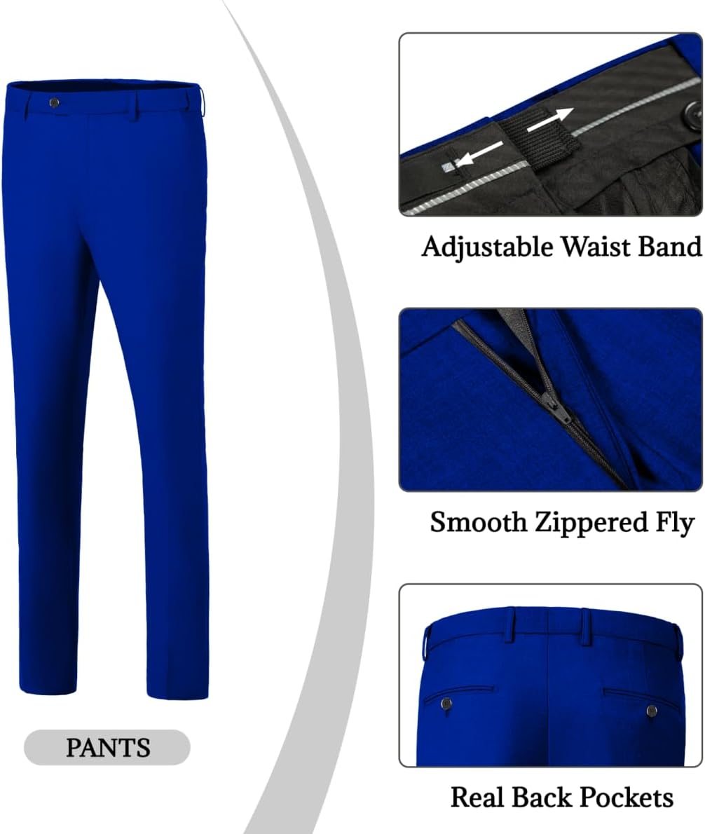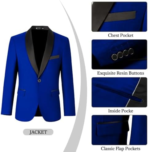• OCCASIONS — This suit set is with slim fit cut from 3D draping. Easy to match with any formal/business tuxedo shirt in any dinner, banquet, wedding, prom, evening, party, ball, graduation, ceremony, celebration, halloween, christmas, new year, festival, cruise, performance, dating, meeting, yacht party, magician, chorus, etc. From formal to informal, suitable for various occasions. It is also a great surprise for your friend, father, husband, brother and son.