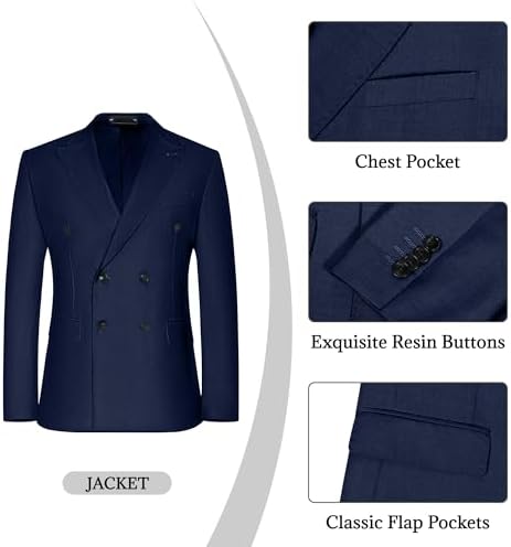 • 2 Piece Suit — Mens double breasted suit includes a double breasted blazer and a dress pants.